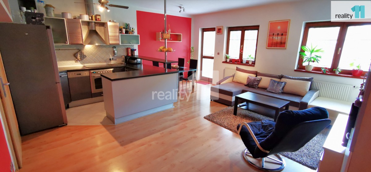 +popl. 1550 Kč. Reality 11 Vám zprostředkují dlouhodobý pronájem bytu o dispozici 3+kk 74 m² s přístupem na společnou zahradu přímo z bytu.