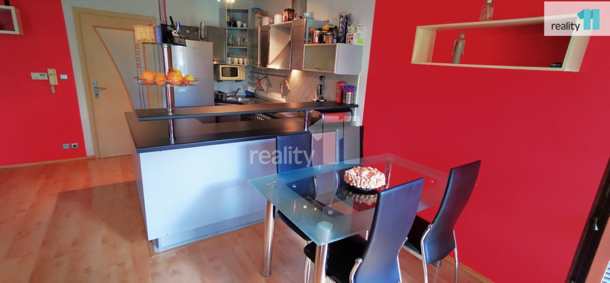 Pronajímá se vybavený pouze kuchyňskou linkou se spotřebiči a vestavenou velkou šatní skříní a policovým systémem. Vytápění je řešené vlastním novým plynovým kotlem, tudíž si obyvatelé sami mohou regulovat teplo v bytě.