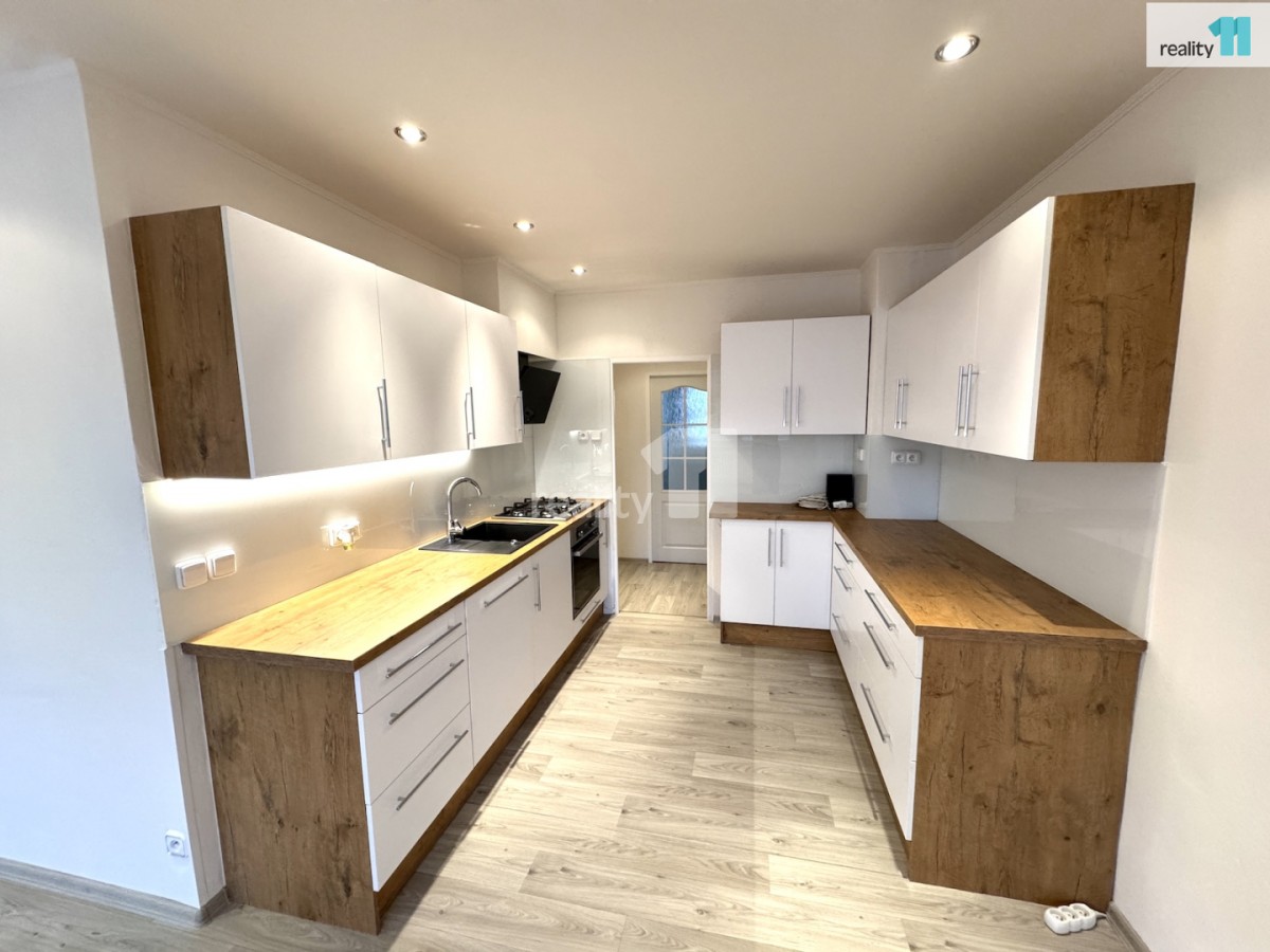V bytě, o velikosti 68. 5 m², je právě dokončená rekonstrukce. Nová koupelna se sprchovým koutem, toaleta po rekonstrukci, nové podlahy, nová výmalba, kuchyňská linka cca 2 roky stará - moderní a praktická . Má ideální dispozici, kdy ze vstupní chodby do tvaru L, vedou samostatné dveře do obou ložnic (cca 8. 5 m² a 11. 5 m²), přičemž u větší ložnice je slunná, zasklená lodžie. Dále velký obývací pokoj s kuchyňským koutem (cca 32 m²). Kuchyňská linka s myčkou, plynovou varnou deskou, troubou, digestoří. Lednice ani pračka v bytě není. K uložením věcí Vám skvěle poslouží praktická šatna, samostatná komora naproti bytu a také sklep v suterénu domu.