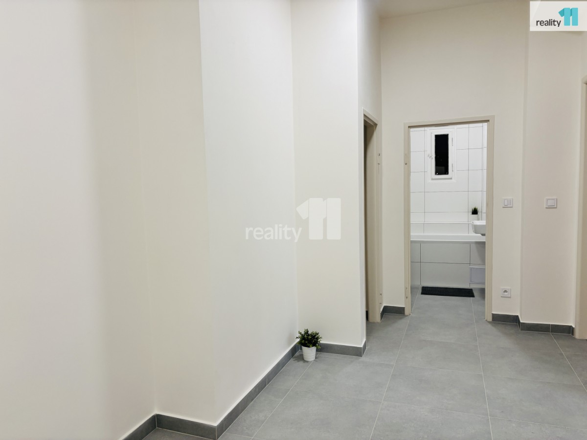 + poplatky + převod el. energie. Reality 11 Vám zprostředkují pronájem světlého bytu 3+kk po kompletní rekonstrukci o velikosti 75 m², který se nachází v 5. NP (páté nadzemní ...patro) cihlového domu včetně výtahu. Byt se skládá ze vstupní chodby, obývacího pokoje s kuchyňským koutem, 2 pokojů, koupelny s vanou, samostatného sociální zařízení WC, technické místnosti a komory. Nová plastová okna s orientací do klidné ulice, na podlahách je dlažba a PVC. Byt je vybaven kuchyňskou linkou s varnou desku, troubou, digestoří a myčkou. Vytápění bytu je pomocí domovní kotelny, ohřev vody zajišťuje bojler. V domě zaveden UPC internetové připojení. Veškerá občanská vybavenost v okolí. Klidné a moc hezké bydlení s výbornou dopravní dostupností. Doporučujeme. Ev. číslo: 27933. Energetický štítek: E