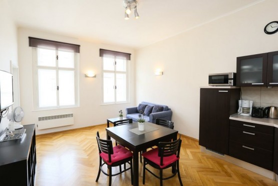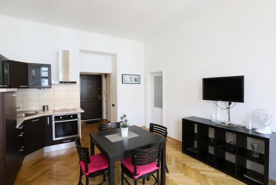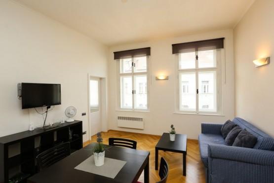 Hezký, plně zařízený byt k pronájmu se nachází ve čtvrtém patře cihlové budovy včetně výtahu, na adrese Praha 3, Žižkov, ulice Bořivojova. Plné vybavení nabízí veškerý komfort bydlení, v bytě je plně zařízená kuchyňská ...linka (lednice s mrazákem, mikrovlnná trouba, digestoř, sporák se sklokeramickou deskou), v jedné ložnici je manželská postel, ve druhé palanda. Ložnice jsou neprůchozí, byt je také vhodný ke spolubydlení. V koupelně je sprchový kout a toaleta. Lokalita poskytuje skvělé dopravní spojení (včetně nočních hodin) do ostatních částí Prahy, cesta tramvají (zastávka je 5 min od domu) do centra trvá cca 7 minut. V okolí je také velký počet obchodů, restaurací a barů.