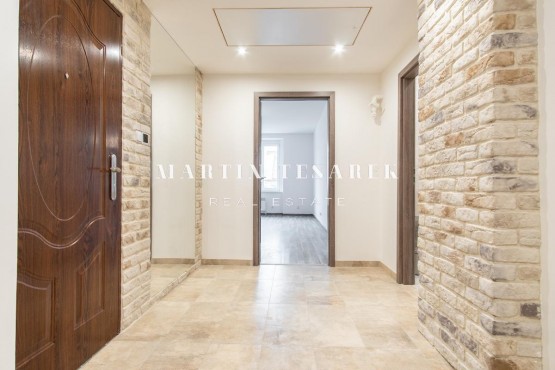 Zrekonstruovaná jednotka dispozičně kvalifikovaná jako 3+kk, o celkové výměře 75 m2 působí vizuálně i pocitově spíše jako byt v novostavbě.