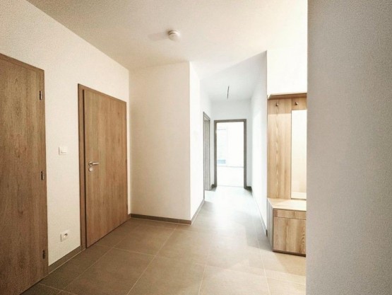 V bytě je nová, moderní kuchyňská linka, s vestavěnými spotřebiči Electrolux - varná deska, mikrovlnná trouba, horkovzdušná/parní trouba, myčka, prostorná kombinované lednice s mrazákem. Na míru vyrobená předsíňová stěna (věšáky, zrcadlo, prostorný botník, bytel - ný sedák), s vestavěnou šatní a policovou skříní. V oknech žaluzie.