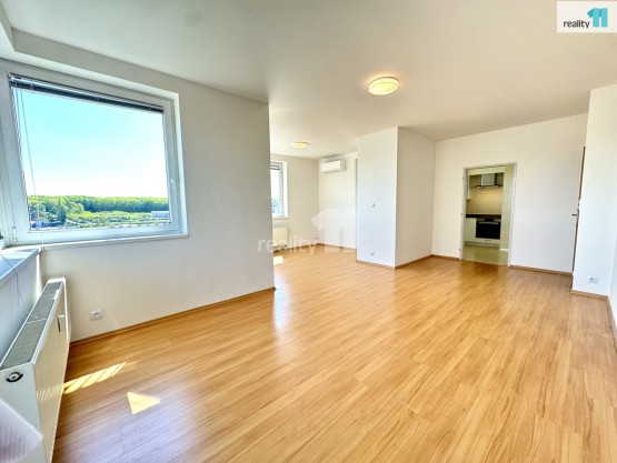Nachází se v 10. patře novostavby z roku 2008 a jeho výjimečnost podtrhují právě dva venkovní prostory: balkon orientovaný na východ a lodžie směrem na jih. Lodžie poskytuje naprosté soukromí díky bočnímu zakrytí, výhled do okolní krajiny a je propojena s kuchyní praktickým oknem, které usnadňuje servírování jídla při venkovním posezení.