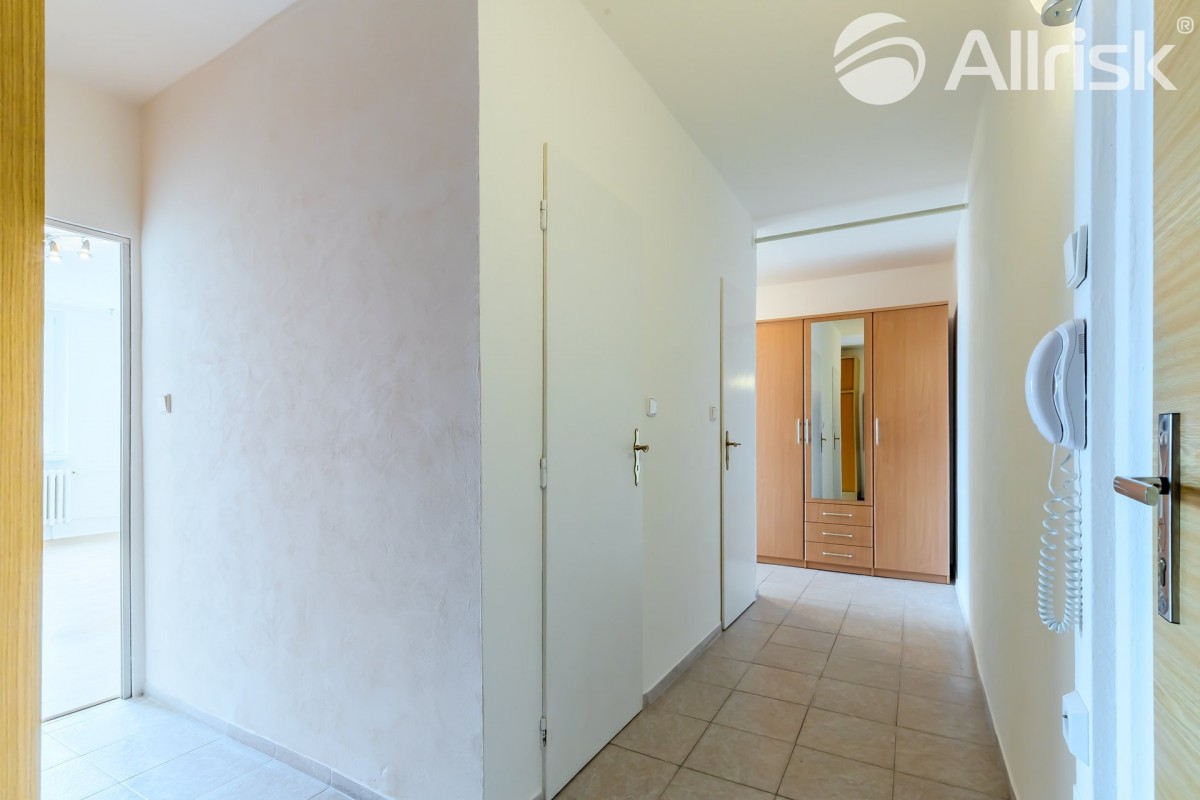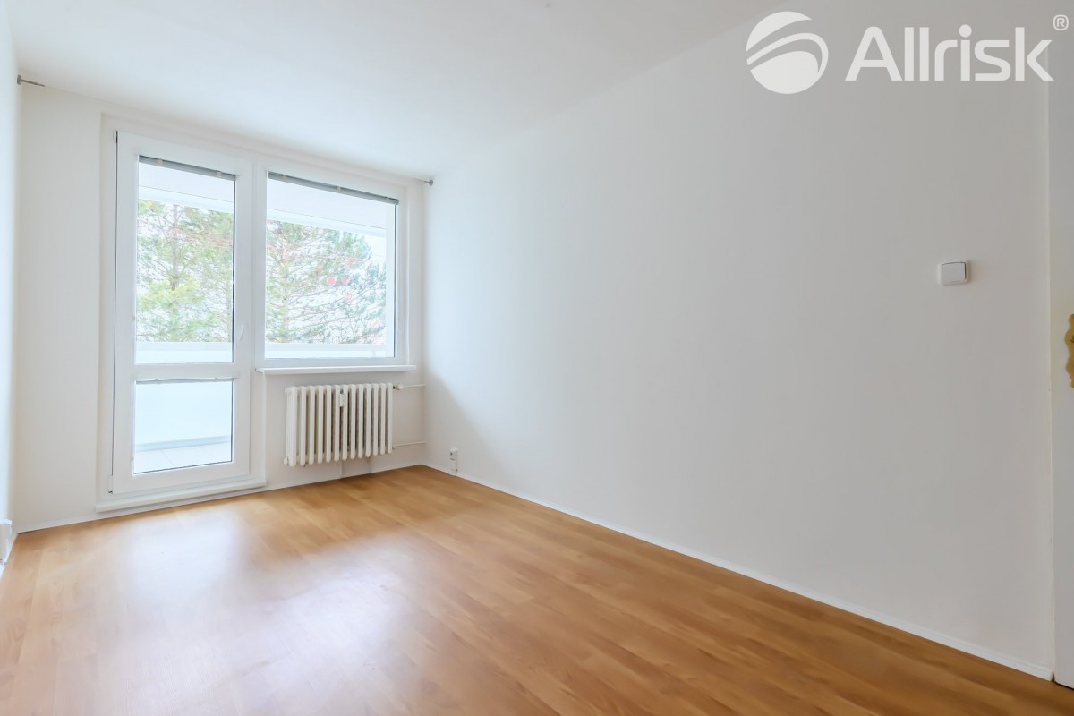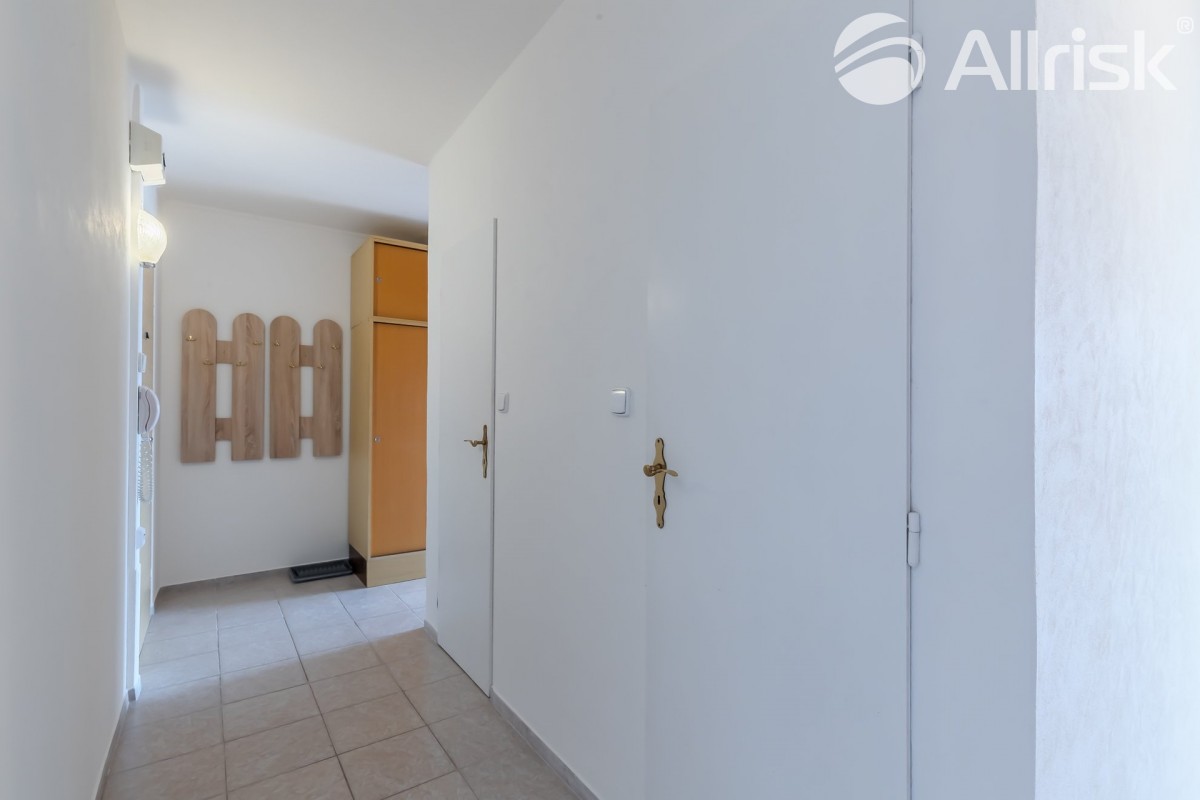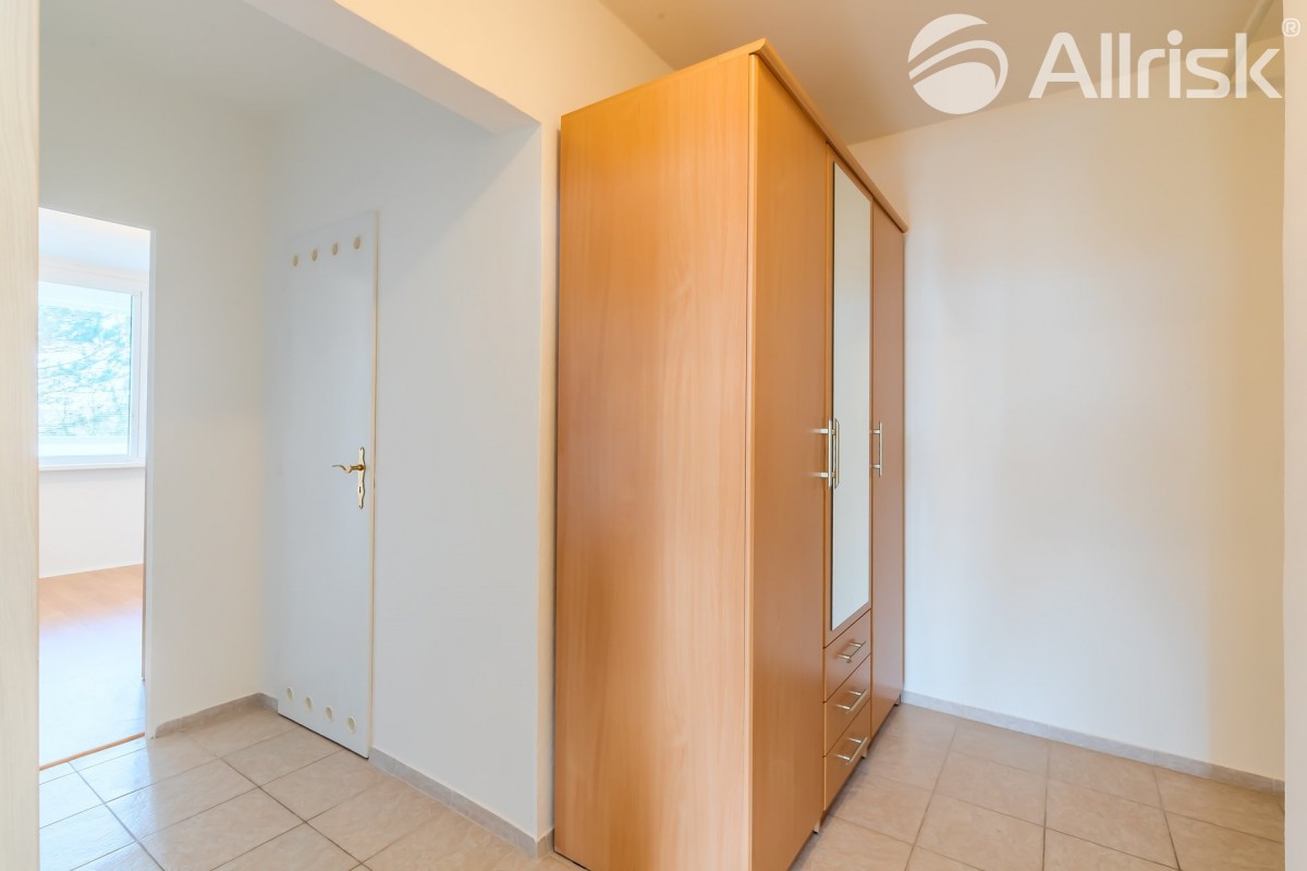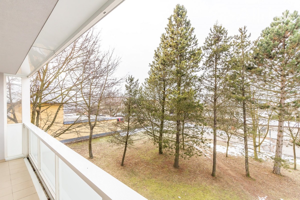 Do bytu vstoupíte do prostorné chodby, navazuje obývací pokoj s kuchyňským koutem, z chodby je přístupná koupelna s rohovou vanou, vedle je samostatné sociální zařízení WC. V bytě je praktická komora, možno využívat i jako spíž. Dál jsou zde dva samostatné pokoje, jeden z nich je se vstupem na 9, 5 m2 velkou lodžii s pěkným výhledem do zeleně.