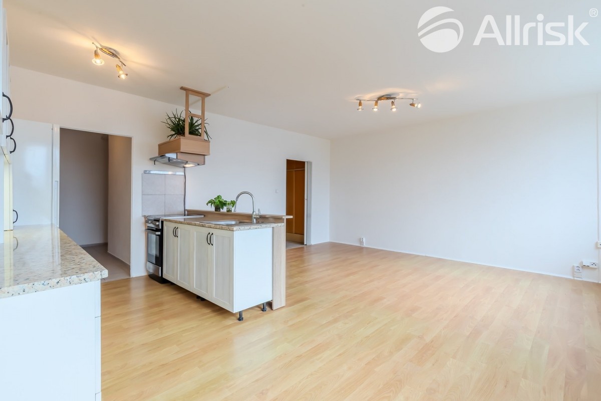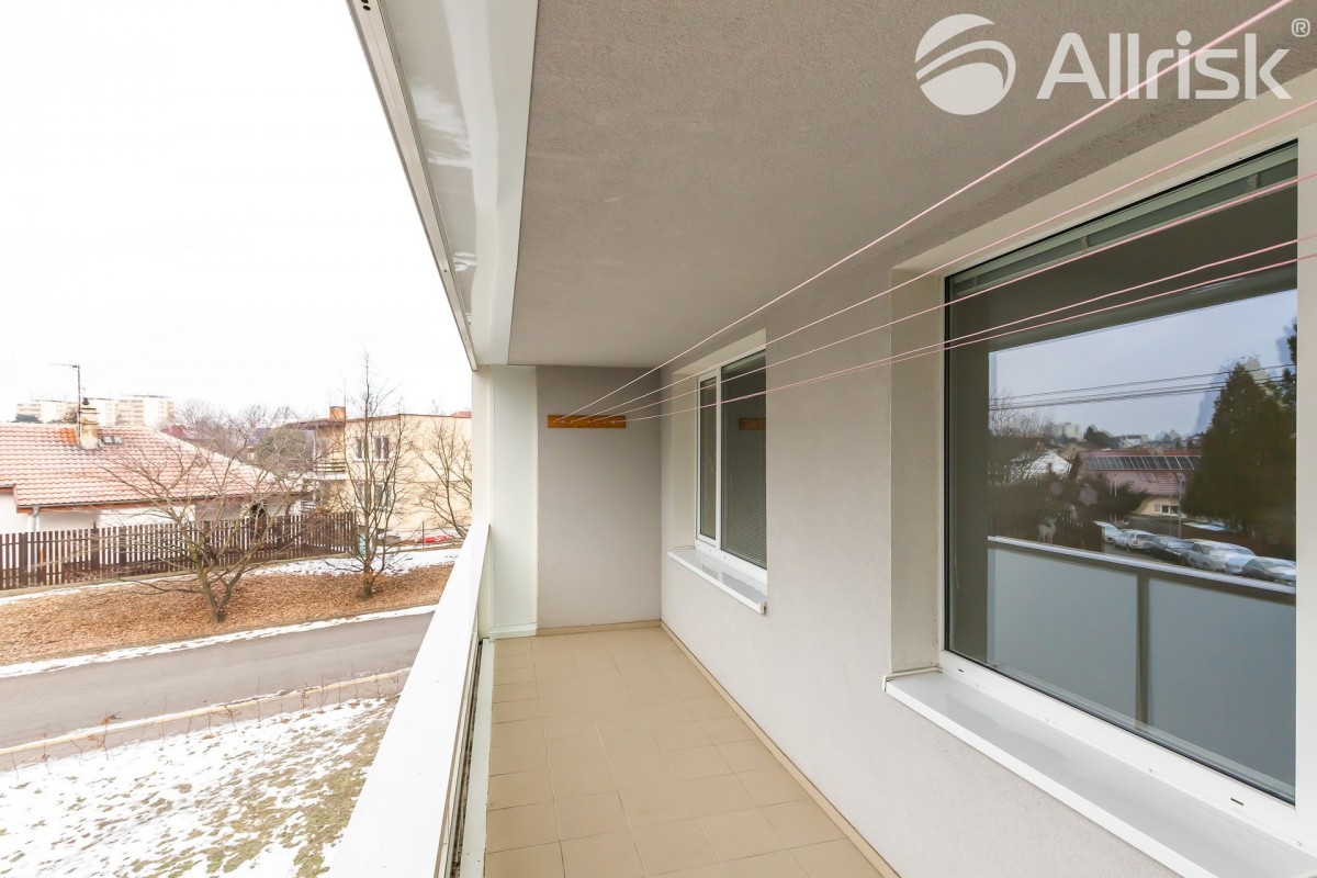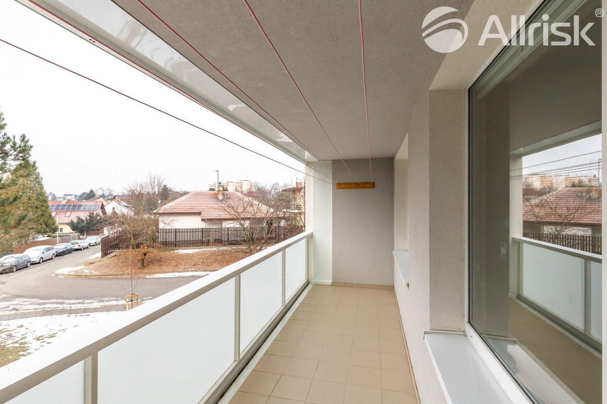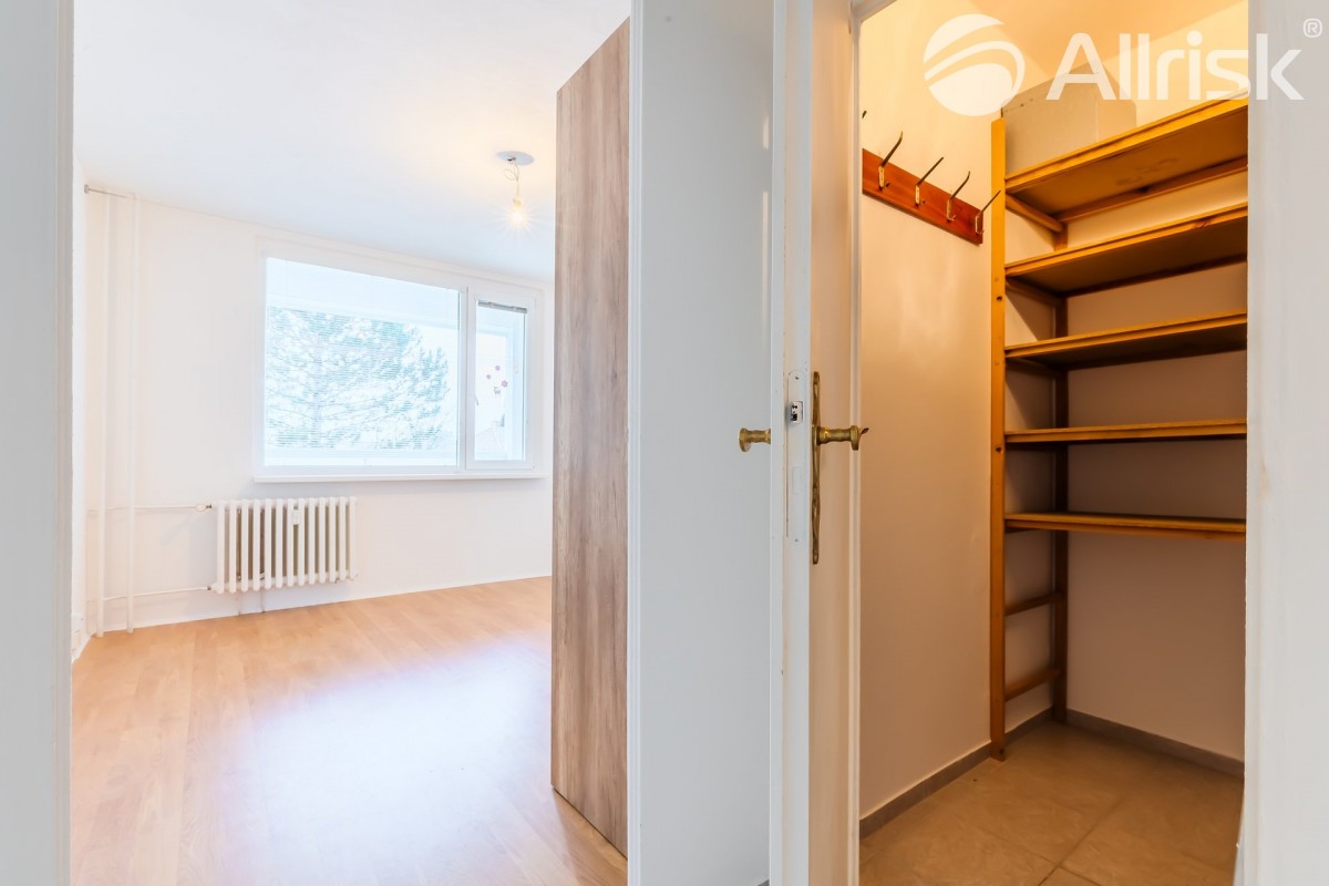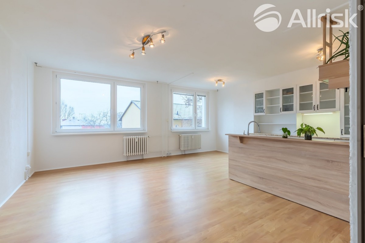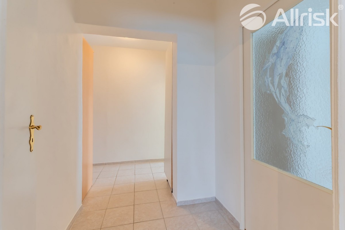 Do bytu vstoupíte do prostorné chodby, navazuje obývací pokoj s kuchyňským koutem, z chodby je přístupná koupelna s rohovou vanou, vedle je samostatné sociální zařízení WC. V bytě je praktická komora, možno využívat i jako spíž. Dál jsou zde dva samostatné pokoje, jeden z nich je se vstupem na 9, 5 m2 velkou lodžii s pěkným výhledem do zeleně.