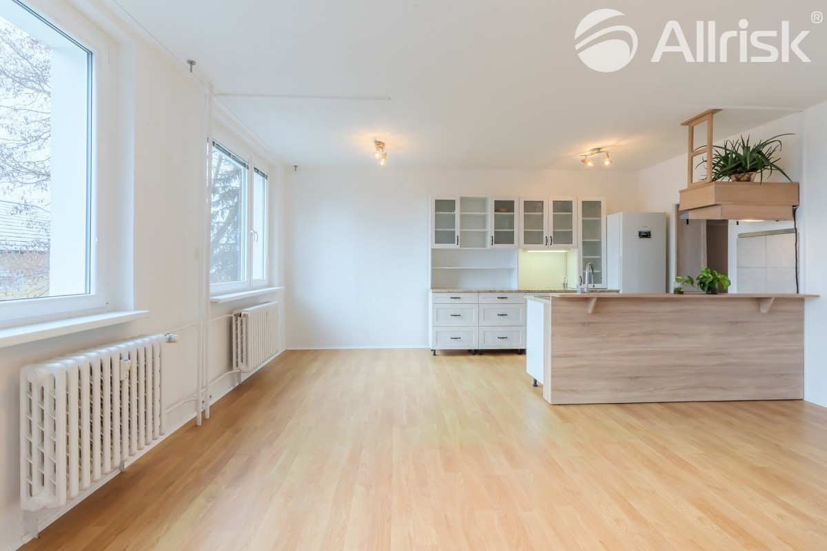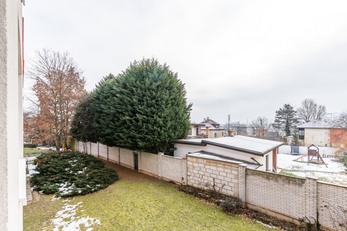 K bytu náleží... sklep v suterénu domu. Původní dispozice bytu byla 3+1, vybouráním příčky mezi kuchyní a obývacím pokojem vzniklo 3+kk s velkorysým rozměrem 29 m2 pro obývací pokoj s kuchyňským koutem.
