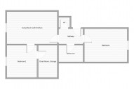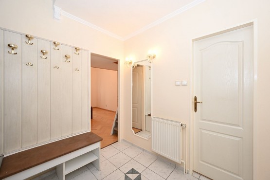 Byt ses...tává z předsíně, tří pokojů, kuchyňského koutu, koupelny s rohovou vanou a zvlášť toaletou.