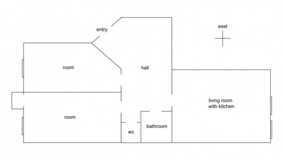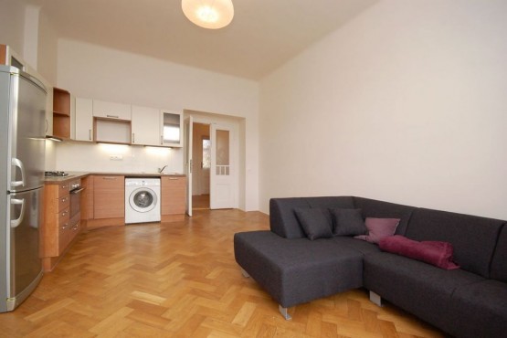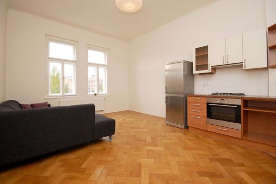 Byt sestává ze vstupní haly, obývacího pokoje s kuchyňskou linkou, dvou samostatných pokojů, koupelny s vanou, samostatné toalety a komory. Byt se pronajímá nezařízený.