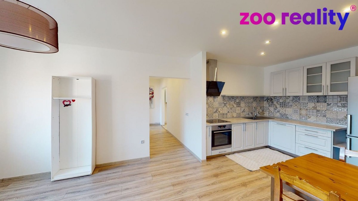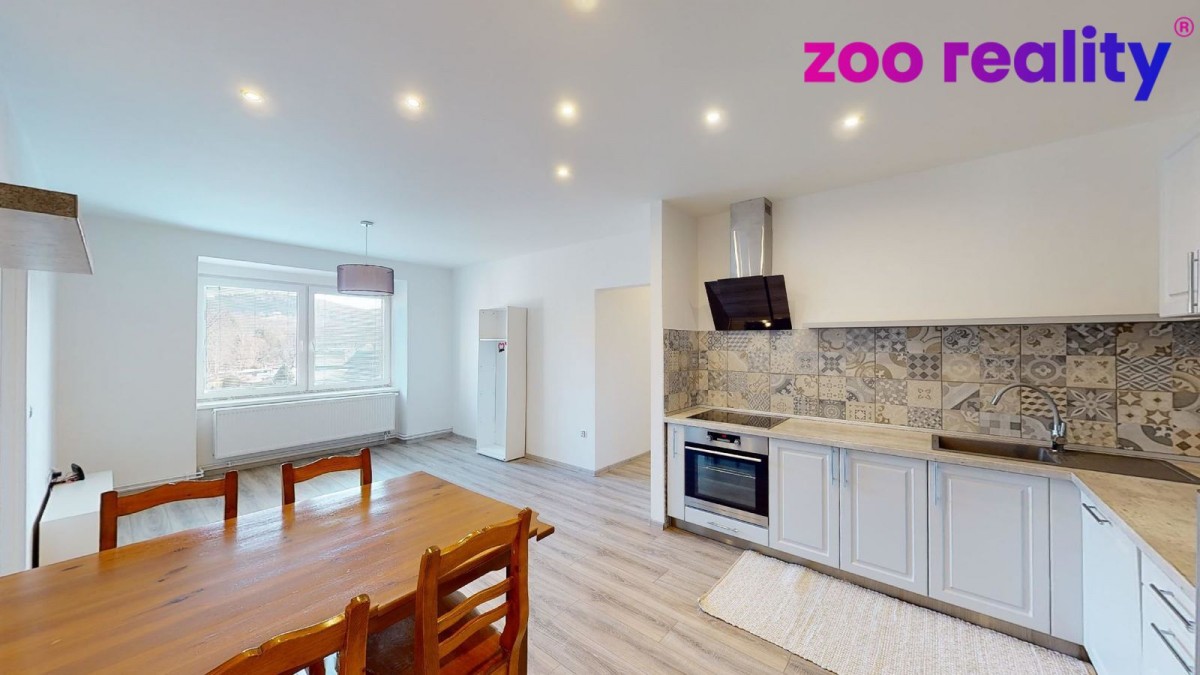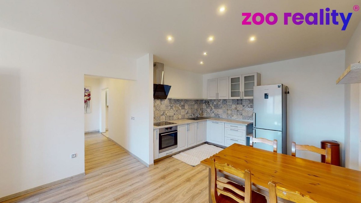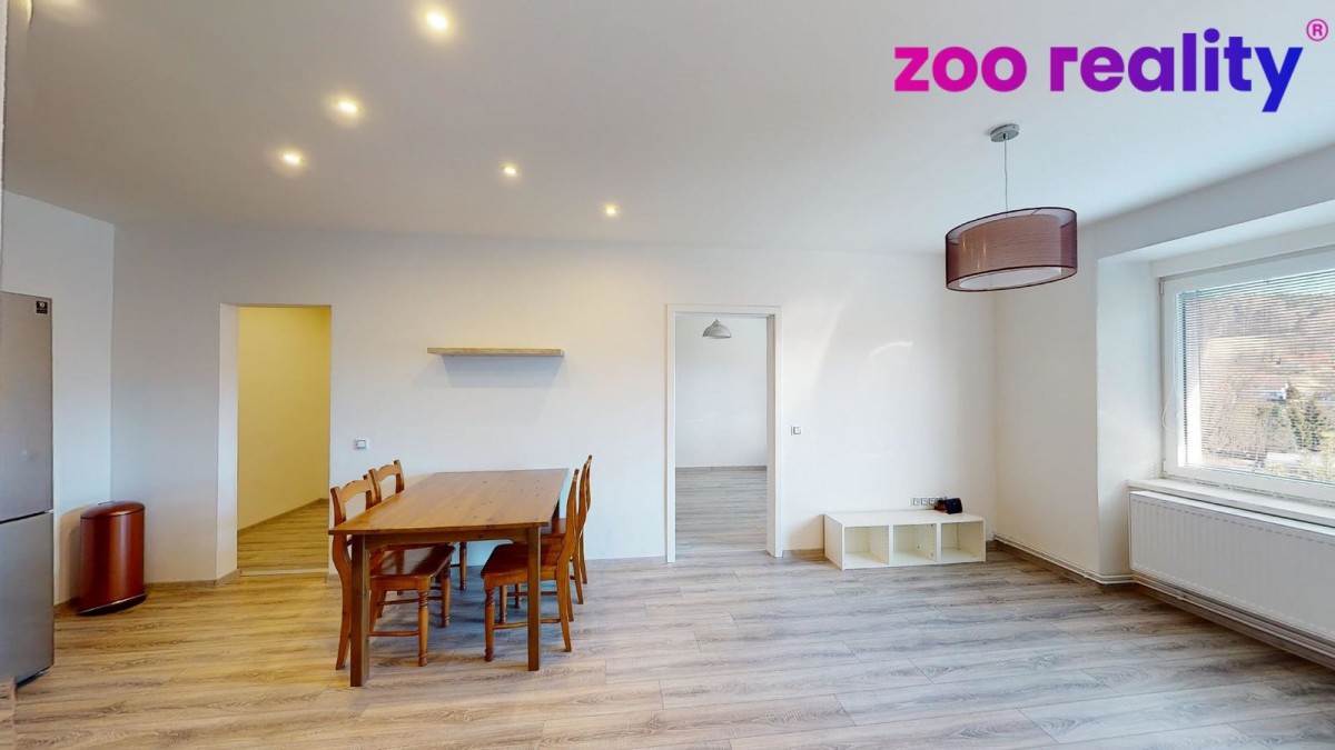 Pronájem bytu 3+kk o užitné ploše (80 m²) ve zděném bytovém domě v obci Zdíkov. Nachází v 1. patře a je po stylové kompletní rekonstrukci a dobře odizolován. Vytápění řešeno e...lektrickým kotlem. Dispozice bytu jsou předsíň, samostatné sociální zařízení WC, koupelna se sprchovým koutem, na předsíň pak navazuje pokoj a vstup do obývacího pokoje s kuchyňskou linkou a jídelním koutem. V kuchyni je dále menší komora a vchod do velké ložnice. K bytu náleží sklep. Prostor si můžete projít ve virtuální prohlídce. Výhodou je zahrada po celé slunné straně domu obehnaná udržovaným živým plotem, což poskytuje určité soukromí a je tedy možné ji využívat jak pro společné soukromé aktivity, či jako dětské hřiště. Orientace všech oken je V a JV směrem.