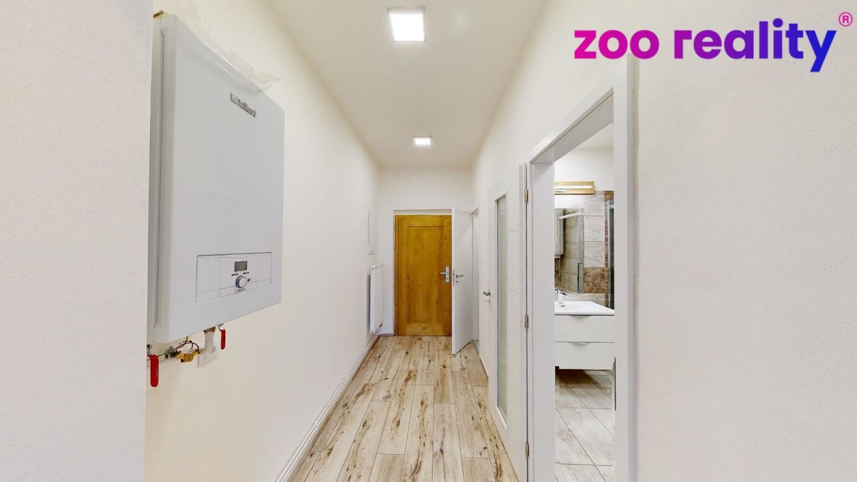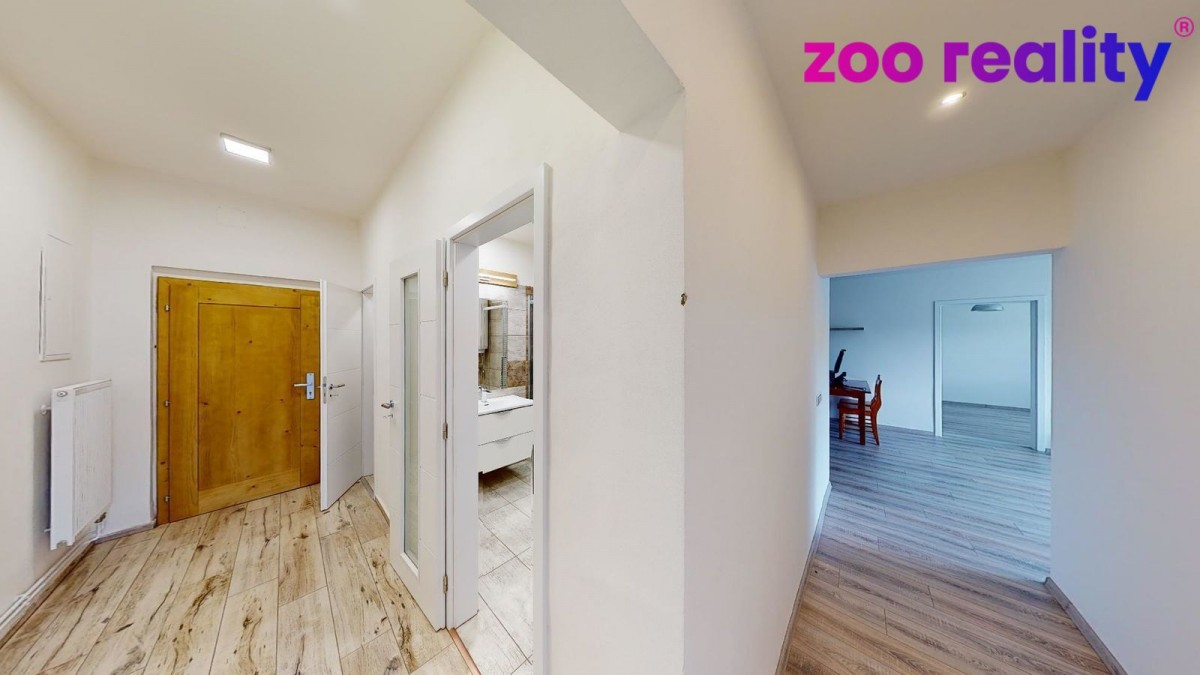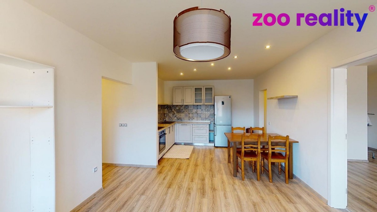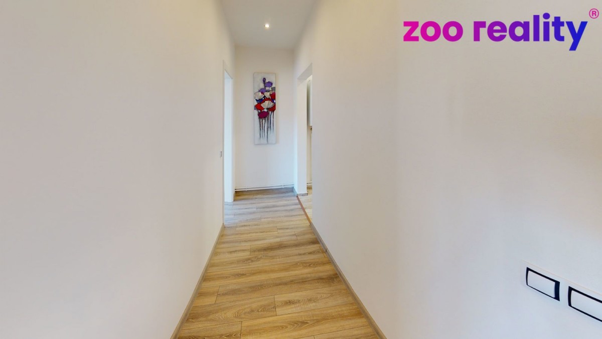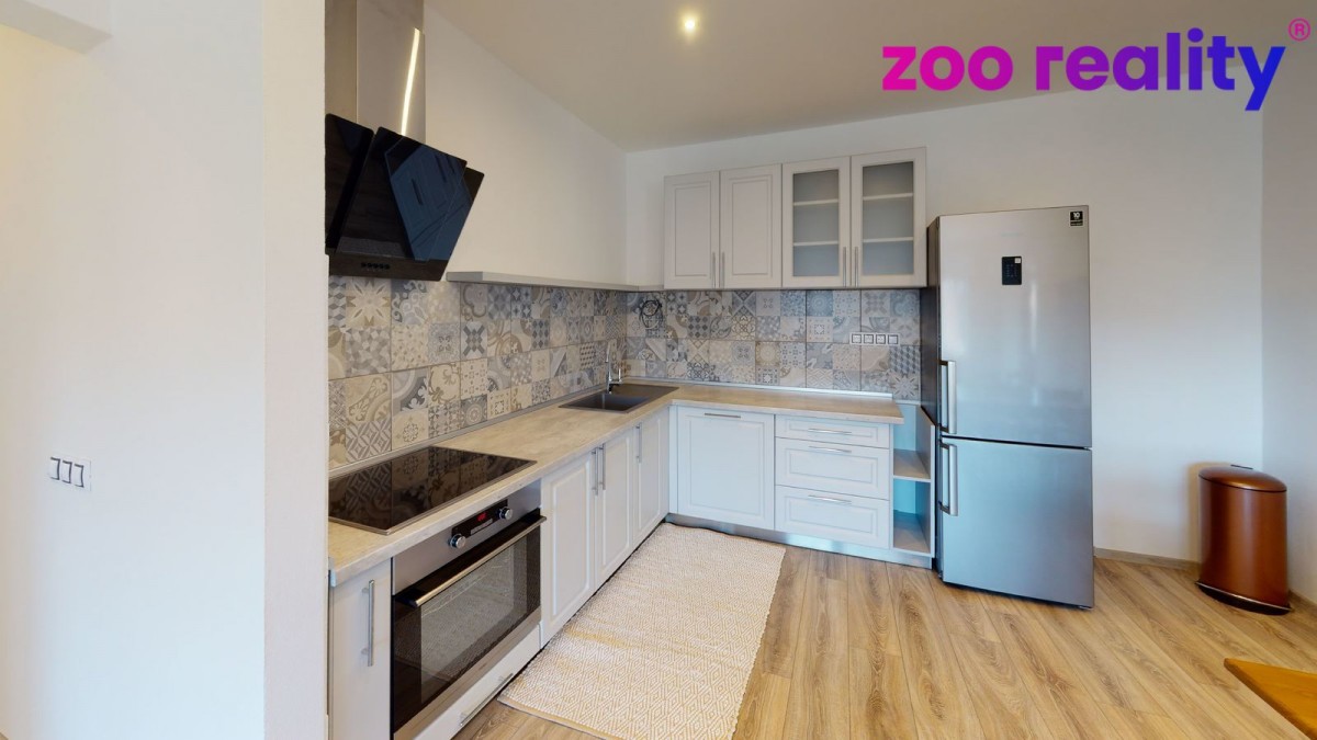 Pronájem bytu 3+kk o užitné ploše (80 m²) ve zděném bytovém domě v obci Zdíkov. Nachází v 1. patře a je po stylové kompletní rekonstrukci a dobře odizolován. Vytápění řešeno e...lektrickým kotlem. Dispozice bytu jsou předsíň, samostatné sociální zařízení WC, koupelna se sprchovým koutem, na předsíň pak navazuje pokoj a vstup do obývacího pokoje s kuchyňskou linkou a jídelním koutem. V kuchyni je dále menší komora a vchod do velké ložnice. K bytu náleží sklep. Prostor si můžete projít ve virtuální prohlídce. Výhodou je zahrada po celé slunné straně domu obehnaná udržovaným živým plotem, což poskytuje určité soukromí a je tedy možné ji využívat jak pro společné soukromé aktivity, či jako dětské hřiště. Orientace všech oken je V a JV směrem.