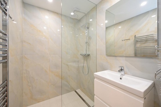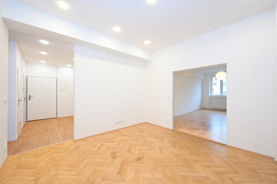 Krásná koupelna se sprchovým koutem, toaleta zvlášť. V části bytu renovované původní dubové parketová podlaha, kvalitní bezpečnostní dveře.