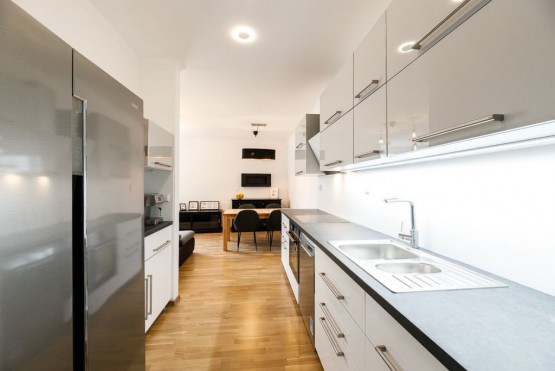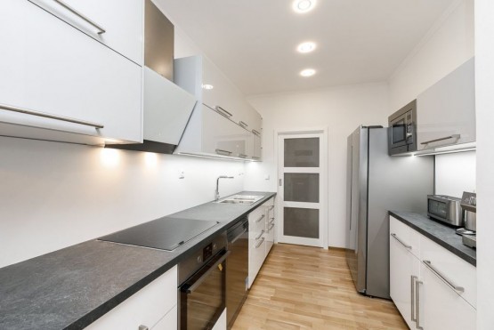 Byt je po kom...pletní rekonstrukci. Kuchyňský kout je plně vybaven lednicí, mrazničkou, sklokeramickou deskou, elektr. troubou, myčkou, mikrovlnnou troubou, kompletně zařízený kuchyňským vybavením. V koupelně je sprchový kout a pračka, toaleta je zvlášť.