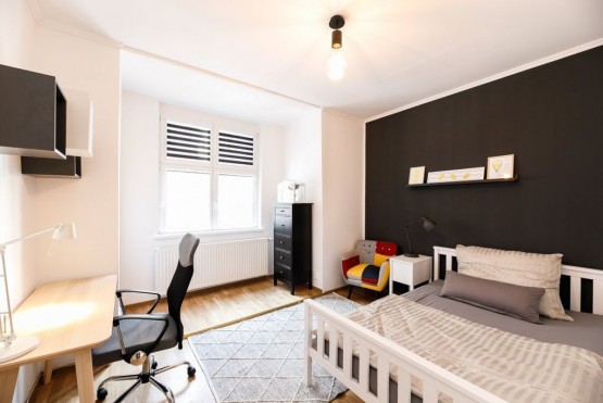 Krásný luxusně zařízený byt 3+kk k pronájmu o celkové rozloze 82m2 se nachází ve druhém patře cihlového domu včetně výtahu v ulici Na hutích, Praha 6.