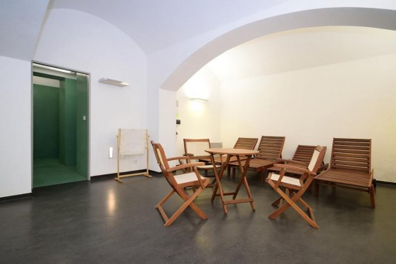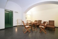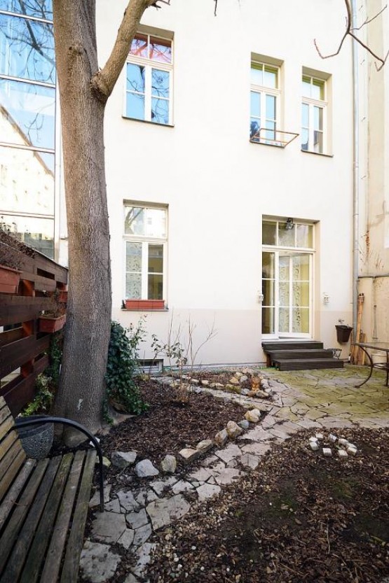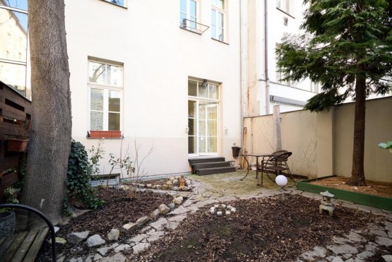 Byt má exkluzivní privátní zahradu o výměře 41 m2. Příslušenstvím k bytu je také sauna v suterénu domu, kterou může nájemce kdykoli využít. Sklepní kóje 2 m2.