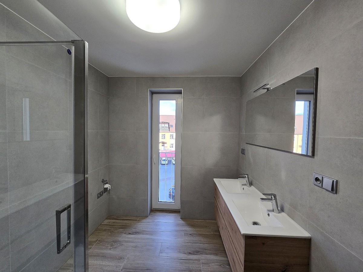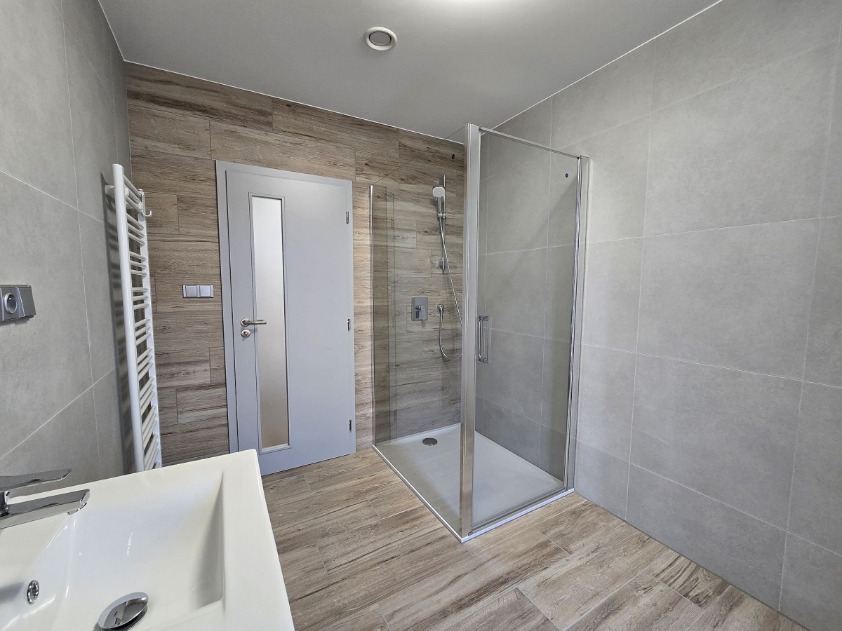 Nadstandardem je podlahové vytápění v celém bytě, klimatizační jednotky v obytných místnostech a elektrické předokenní žaluzie, zajišťující soukromí a regulaci světla v dané místnosti. Díky orientaci na jižní stranu je v tomto bytě dostatek světla. Tento byt Vám zpříjemní život a utvoří domov. Nezanedbatelnou výhodou je možnost parkování.