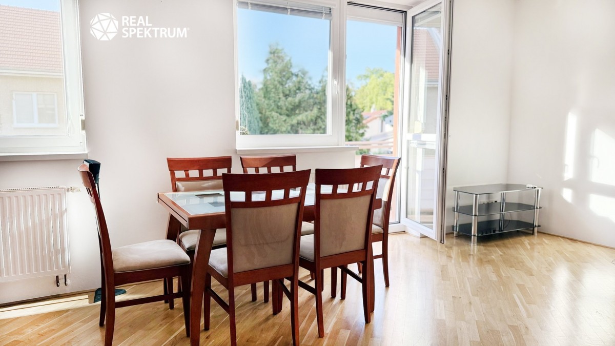 Tento byt zaujme už na první pohled svou atmosférou, kvalitou vybavení a praktickým řešením prostoru. Každý pokoj je neprůchozí, což zajišťuje dostatek soukromí pro všechny bydlící. Obývací pokoj i ložnice mají přímý vstup na balkon – jeden orientovaný do klidného vnitrobloku, druhý s výhledem do zeleně. Díky velkým oknům a jihovýchodní orientaci je byt příjemně slunný a působí velice vzdušně.