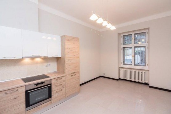Krásný nezařízený byt 3+kk k pronájmu o celkové rozloze 88m2 ve Slezské ulici nedaleko nám. Jiřího Z Poděbrad. Byt se nachází v přízemí cihlového domu a je nevybaven...ý. Sestává z obývacího pokoje s kuchyňským koutem, 2 ložnic, 2 koupelny + sociální zařízení WC, prádelna. Kuchyňský kout je plně vybavený - vestavěná lednice s mrazákem, sklokeramická deska, elektrická trouba, digestoř a myčka.