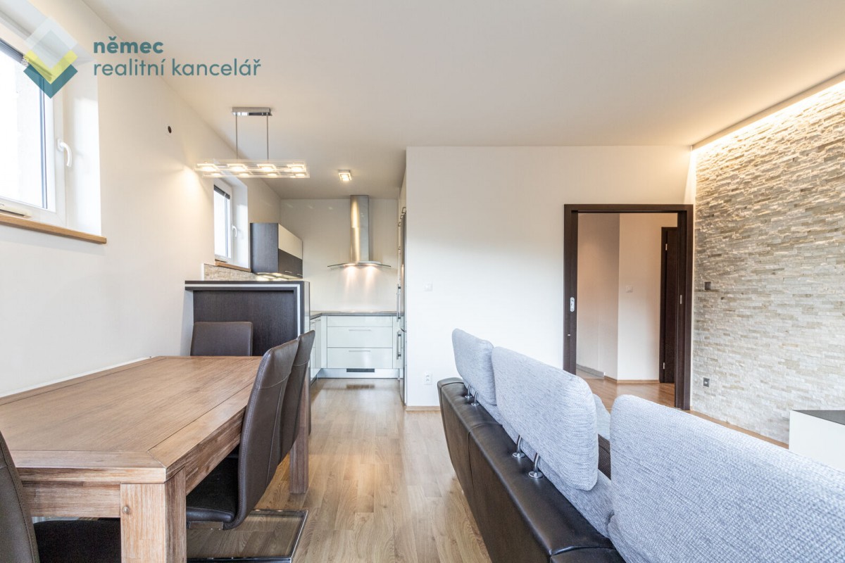 Byt je dostupný od 25. srpna a je kompletně moderně zařízený kvalitním nábytkem (viz foto). Například v ložnici budete usínat na polohovatelných roštech v pohodlí kožené manželské postele.