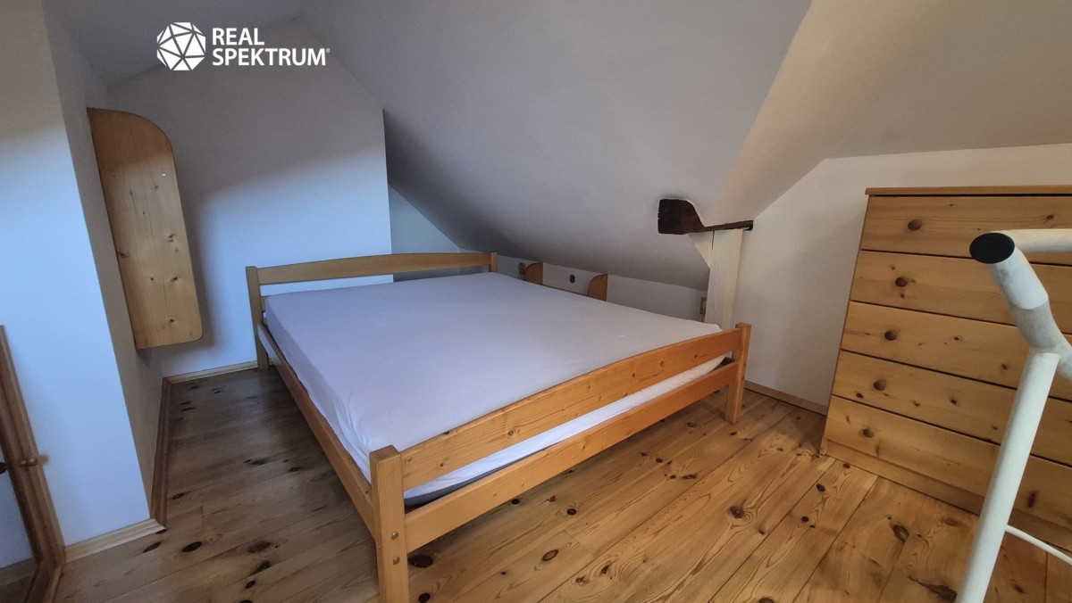 První ložnice nabízí pracovní stoly, postele a dostatek úložného prostoru, druhá ložnice je umístěna na otevřené galerii v horním patře a je vybavena manželskou postelí a úložnými prostory.