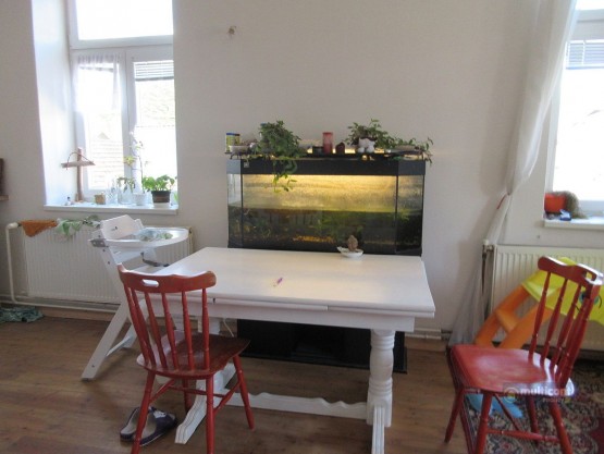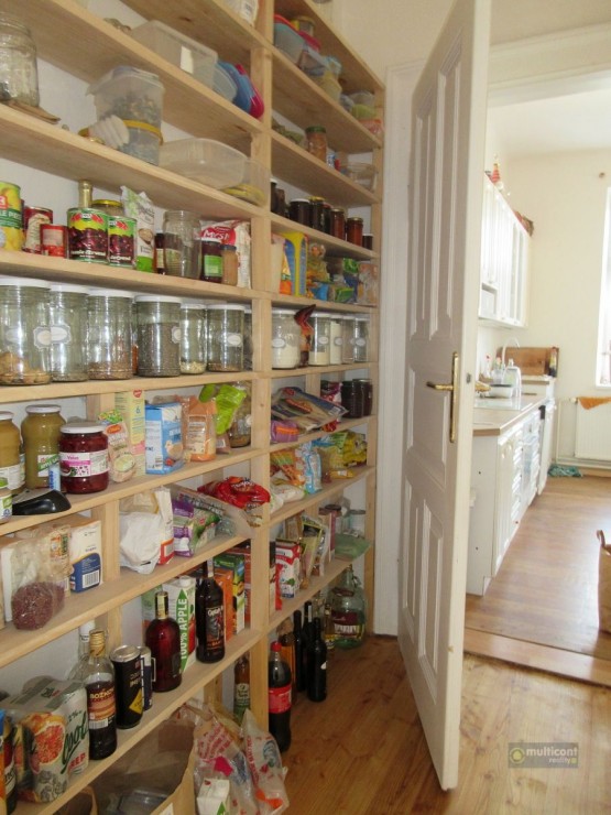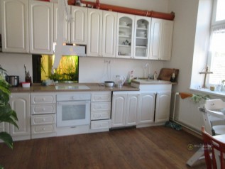 Byt se nachází v 1. patře rodinného domu. Prostornou chodbou vstupujeme do kuchyně spojené s obývacím koutem, dále je zde ložnice, dětský pokoj, spižír...na a toaleta. Koupelna je v přízemí domu společná se spodním bytem.