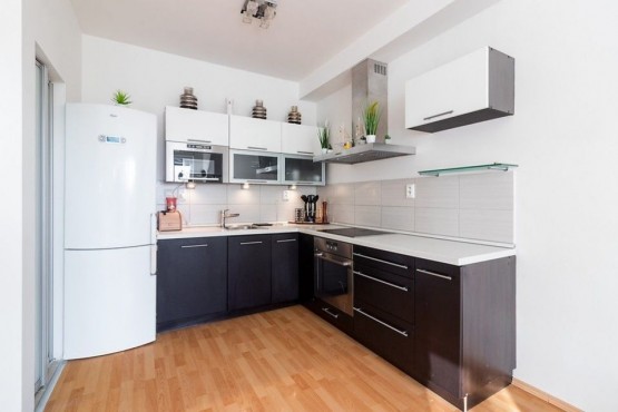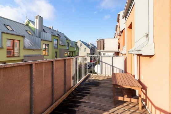Dispozice bytu tvoří kuchyň s vybavenou kuchyňskou linkou (mikr...ovlnka, trouba, varná deska a myčka), komora, obývací pokoj se vstupem na prostorný balkón(10m2), ložnice také se vstupem na balkón, koupelna se sprchovým koutem a samostatné sociální zařízení WC.