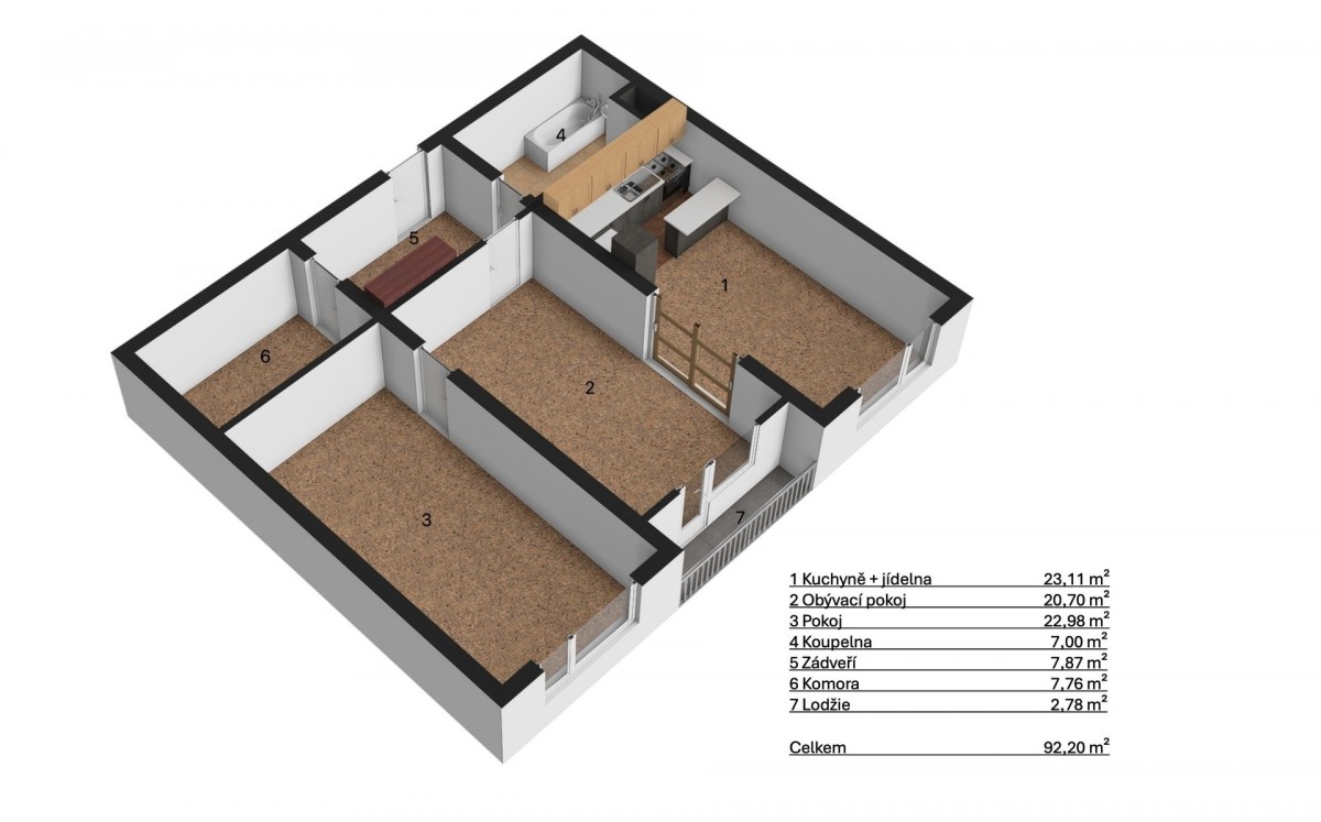 3+kk, 93 m2, panelová, OV, 5. podlaží