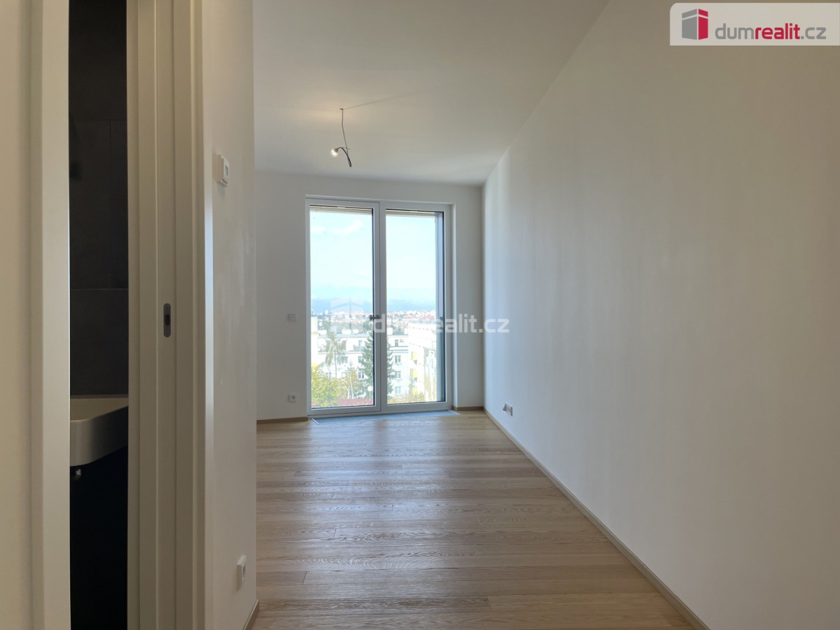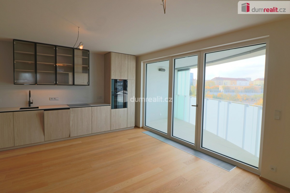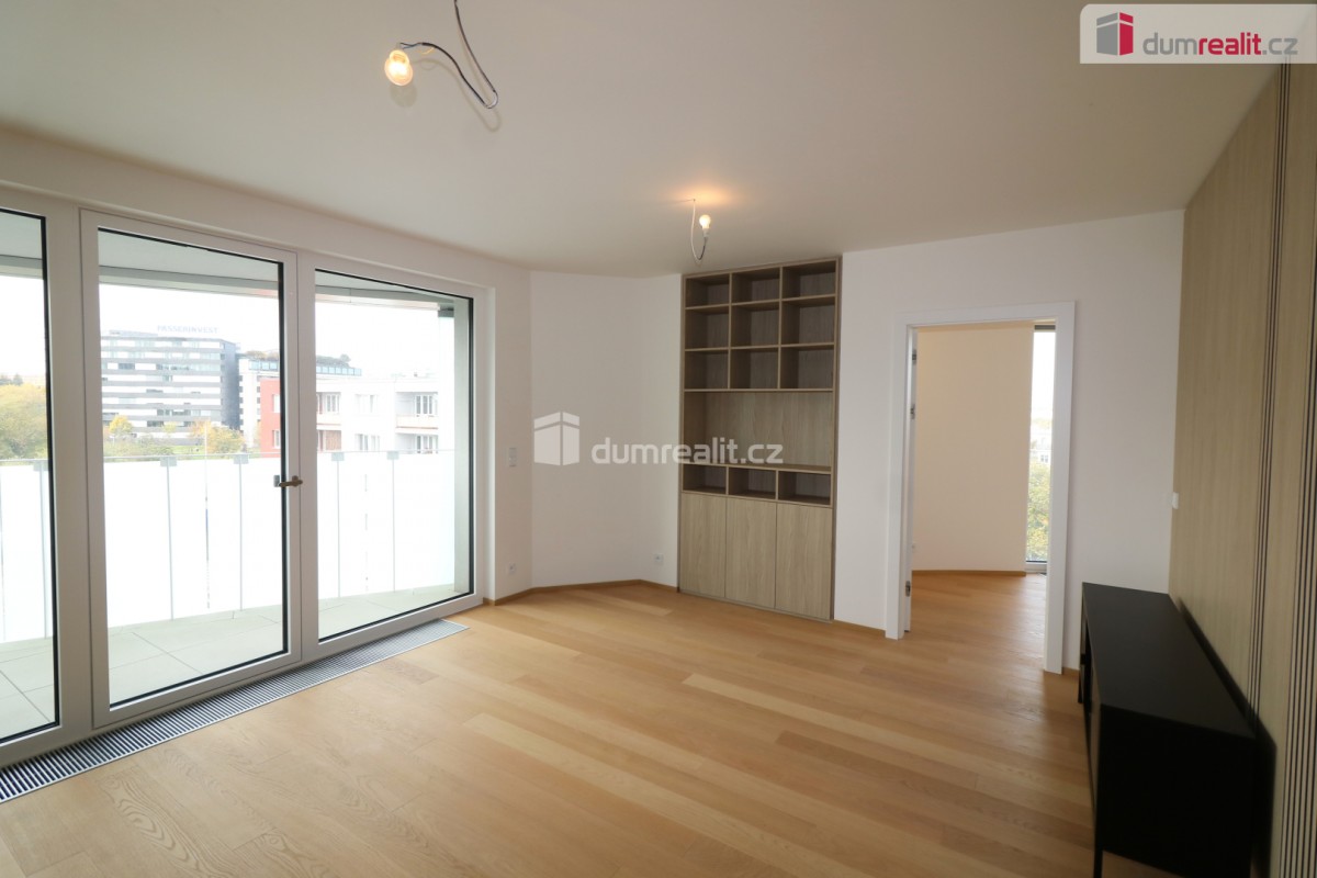 Byt o dispozici 3+kk nabízí vstupní chodbu, ze které lze vstoupit do samostatné ložnice s vlastní koupelnou, kde je umístěna vana a umyvadlo, dále pak do prosvětleného obývací pokoje s plně vybaveným kuchyňským koutem s vestavěnými spotřebiči (varná deska, mikrovlnná a pečící trouba, myčka nádobí, vše AEG, lednice s mrazákem BOSH). Širokým francouzským oknem lze vstoupit na lodžii orientovanou na JZ. Na obývací pokoj dále navazuje druhá ložnice s vlastní koupelnou, kde je umístěn v celé šíři stěny prostorný sprchový kout, dále sociální zařízení WC a umyvadlo. K moderním prvkům bytu patří podlahové vytápění, rekuperace vzduchu, klimatizace v každém pokoji, elektronické ovládání dveří, elektricky ovládané předokenní žaluzie, optický kabel O2 apo. Samostatně lze k bytu pronajmout garážové stání ve 2 podzemním podlaží za 2000, - Kč měsíčně. Byt je nabízen nezařízený, výhradně jako nekuřácký. V případě většího počtu zájemců si majitel vyhrazuje právo rozhodnout o finálním nájemci.