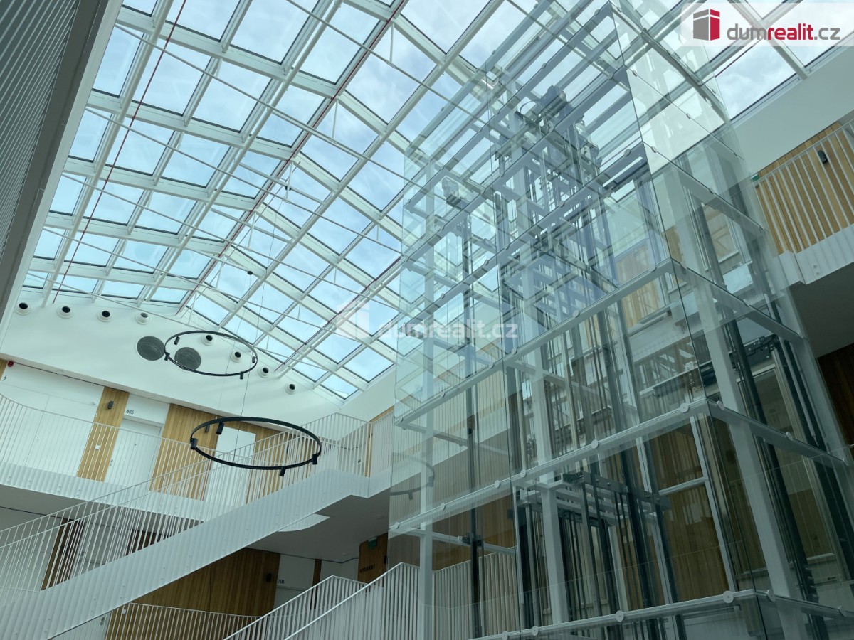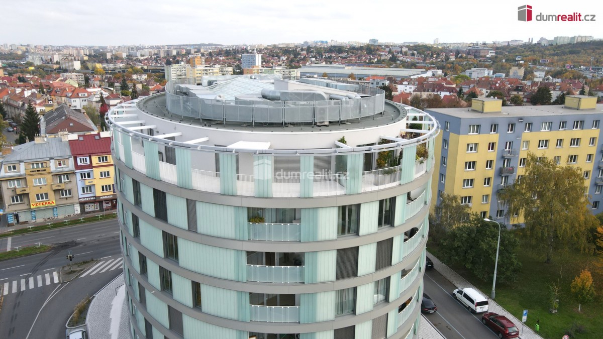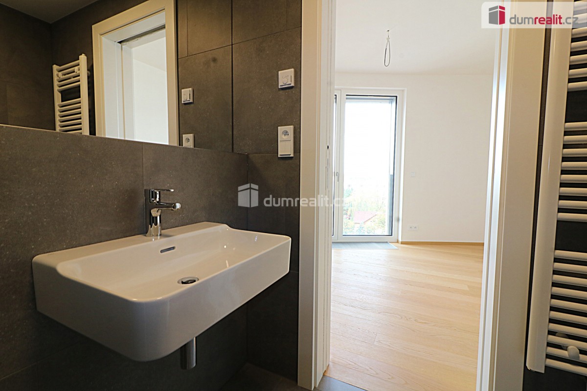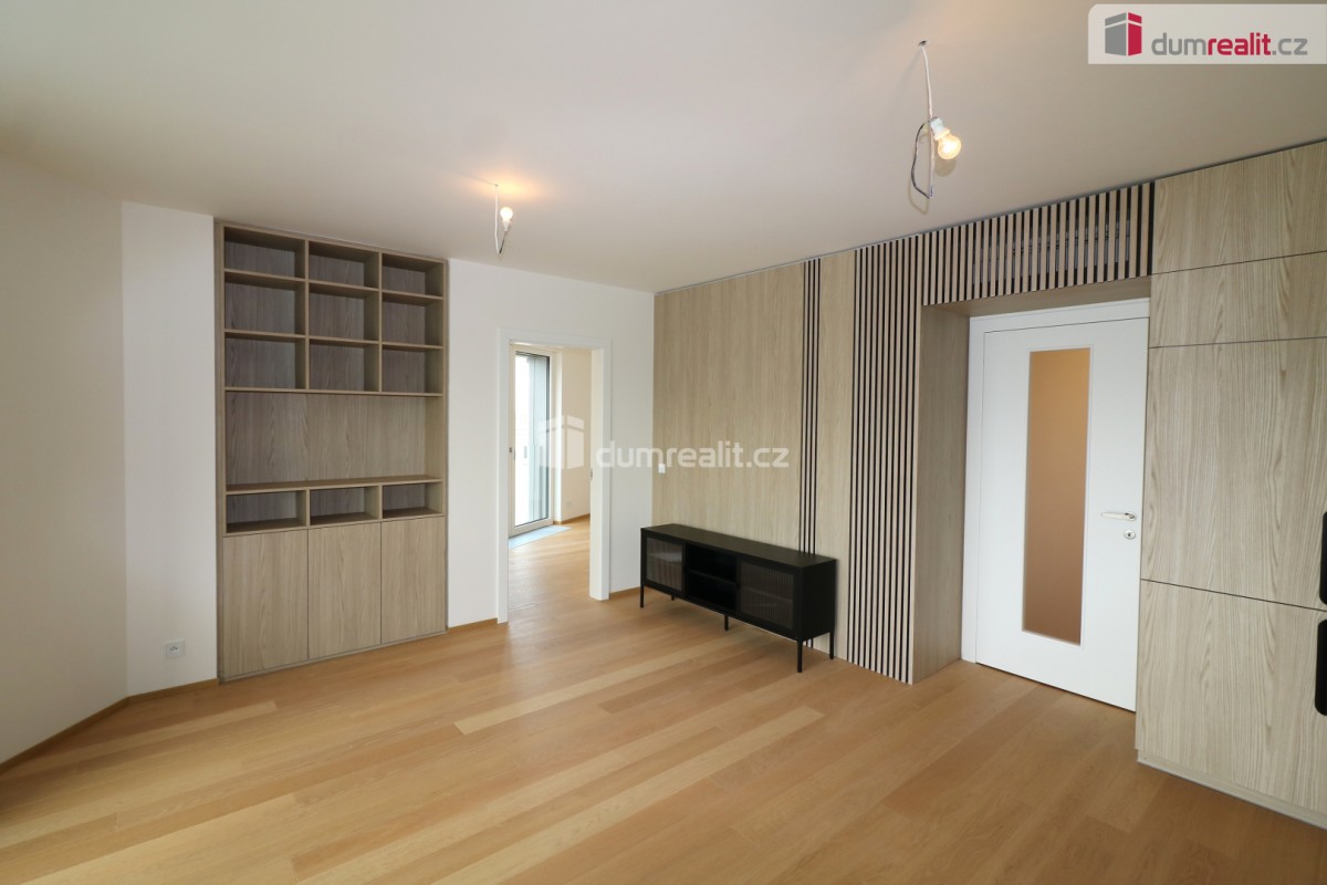 Byt o dispozici 3+kk nabízí vstupní chodbu, ze které lze vstoupit do samostatné ložnice s vlastní koupelnou, kde je umístěna vana a umyvadlo, dále pak do prosvětleného obývací pokoje s plně vybaveným kuchyňským koutem s vestavěnými spotřebiči (varná deska, mikrovlnná a pečící trouba, myčka nádobí, vše AEG, lednice s mrazákem BOSH). Širokým francouzským oknem lze vstoupit na lodžii orientovanou na JZ. Na obývací pokoj dále navazuje druhá ložnice s vlastní koupelnou, kde je umístěn v celé šíři stěny prostorný sprchový kout, dále sociální zařízení WC a umyvadlo. K moderním prvkům bytu patří podlahové vytápění, rekuperace vzduchu, klimatizace v každém pokoji, elektronické ovládání dveří, elektricky ovládané předokenní žaluzie, optický kabel O2 apo. Samostatně lze k bytu pronajmout garážové stání ve 2 podzemním podlaží za 2000, - Kč měsíčně. Byt je nabízen nezařízený, výhradně jako nekuřácký. V případě většího počtu zájemců si majitel vyhrazuje právo rozhodnout o finálním nájemci.