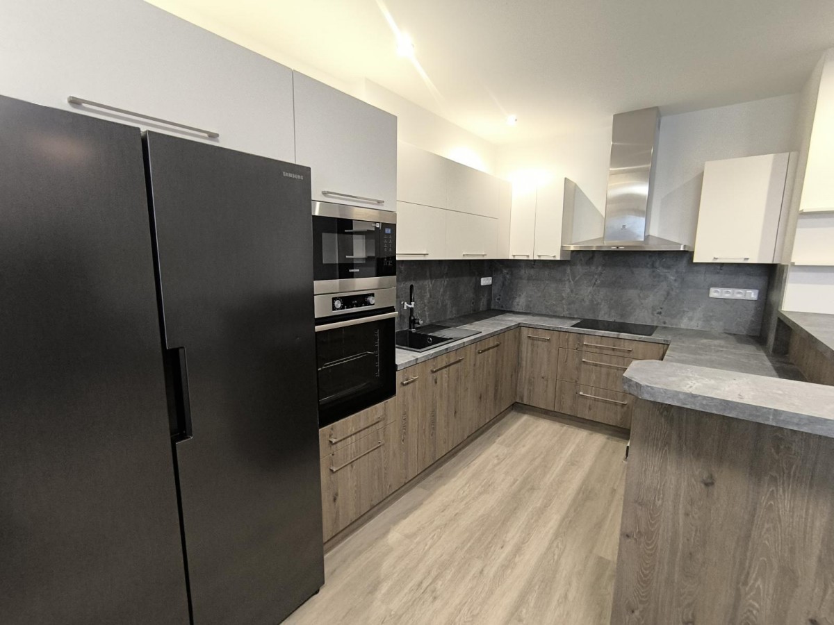 Dům, ve kterém se byt nachází prošel kompletní revitalizací - zateplená fasáda, plastová okna, nové stoupačky (vertikální svody), v bytě nová koupelna , moderní kuchyňská linka, elektro v mědí, internetové připojení kabelem a satelit. Topení a ohřev vody je zajištěn plynovým kondenzačním kotlem Vaillant Ecotec+, radiátory s termostatickými hlavicemi v každé místnosti . Kuchyň je vybavena kuchyňskou linkou se značkovými spotřebiči nová lednice, mikrovlnná trouba, vestavná pečící trouba, odsavač par, myčka. V ložnici prostorná manželská postel. Byt prošel celkovou rekonstrukcí - , nové podlahové krytiny, vnitřní dveře, nově vymalováno. V bytě se nachází samostatná šatna, v chodbě vestavná prostorná skříň,