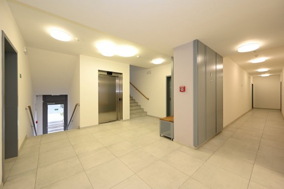 Nadstandardní provedení, dřevěné podlahy, dlažba, bezpečnostní vstupní dveře, centrální vytápění, podlahové topení v koupelně, myčka, připojení UPC, sklep, vstup do budovy na čip, garáž, sklep, kočárkárna, dětské hřiště a školka v blízkosti domu.
