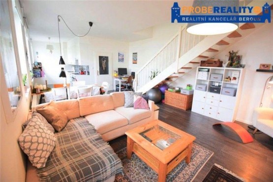 K pronájmu Vám nabízíme vzdušný a dobře řešený mezonetový byt 3+kk o podlahové ploše 87, 5 m2 s terasou o vel. 11, 6 m2 a parkovacím stáním přímo v centru ...Berouna 5 minut od Husova náměstí a Berounky - VOLNÝ OD 01. 05. 2025 - PROHLÍDKY MOŹNÉ v prvním nebo druhém dubnovém týdnu.