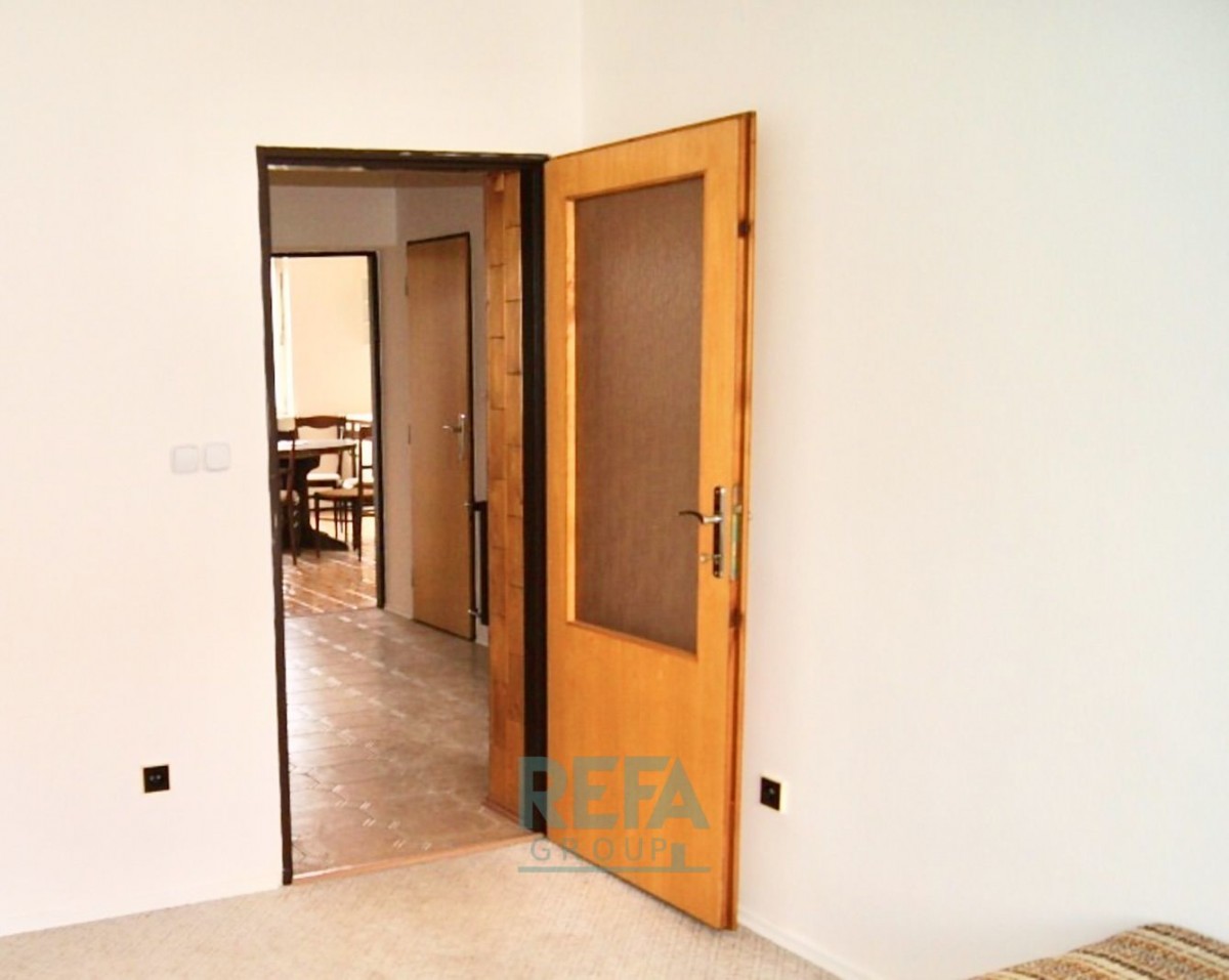 Byt se nachází v prvním patře rodinné vily. Byt je čtvercového půdorysu. V budově jsou celkem 2 byty, každý má svůj vchod. Byt sestává z 3 neprůchozích pokojů o ploše 17 m2, 12, 5 m2 a 1...2, 5 m2. Pokoje jsou orientovaný do zahrady. Kuchyně a obývací pokoj jsou orientovány na jihozápad. Kuchyně je kompletně vybavená plynovým sporákem, elektrickou troubou a myčkou na nádobí. K dispozici je koupelna s vanou a sociální zařízení WC je samostatné. Z centrální chodby se dostanete do všech místností.