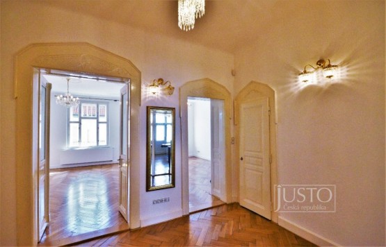 V zastoupení majitele nabízíme k dlouhodobému pronájmu luxusní byt 4+1 na Praze 1 - Josefov. Byt ve 2. patře má velkou centrální halu, tři ložnice, obývací pokoj, kuchyni, šatn...u, komoru vše na ploše 115 m². Samostatnou plně vybavenou kuchyň, koupelna s vanou a samostatné sociální zařízení WC. Byt je citlivě zrekonstruovaný a prezentuje vysoký standard a kvalitu bydlení. Ve všech pokojích jsou kvalitní parketová podlaha, štukované stropy, mosazná kování, pískovaná skla, nové vstupní dveře do bytu. K dispozici rychlý internetové připojení po optickém vlákně, pole satelitních antén, alarm, centrální topení plynovým kotlem pro každý byt zvlášť.