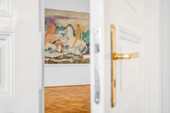 Velkorysý interiér s původními prvky (původní dřevěné parketové podlahy, špaletová repasovaná okna, freska na stěně) tvoří 4 prostorné průchozí pokoje, samostatná, kompletně vybavená kuchyň s oknem a jídelním prostorem. Vstupní hala a technická místnost. Velkorysá koupelna po kompletní rekonstrukci s vanou a sprchovým koutem. Extra toaleta s umyvadlem zvlášť.