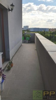Nabízíme k pronájmu mezonetový byt 4+1 s velkou terasou a dvěma balkony (94m2 + 20m2 + 4, 5m2 + 3, 7m2) ve 3. a 4. patře novostavby z roku... 2010. V prvním podlaží bytu (3. patro) se nachází obývací pokoj s kuchyňským koutem, malá pracovna, koupelna se sprchovým koutem + sociální zařízení WC, velká terasa ve tvaru (L) o ploše 20m2. Ve druhém podlaží bytu (4. patro) se nachází tři ložnice, druhá koupelna s vanou, samostatné sociální zařízení WC a dva balkony. Podlahy jsou plovoucí/dlažba, schodiště dřevěné, pokoje neprůchozí. Byt se nabízí k pronájmu včetně nábytku, pračky a lednice. V podzemní garáži se nachází jedno parkovací místo. Další parkovací místa jsou před budovou. Dům se nachází v uzavřeném areálu blízko nákupního centra Europark. Dále je tu Inline dráha park Hrušov, dětská hřiště, mateřská školka. Na metro (A) Depo Hostivař 10 min. autobusem. Poplatky činí včetně elektřiny 5. 000 Kč/měs. Byt je ihned k nastěhování. Prohlídky dle dohody.