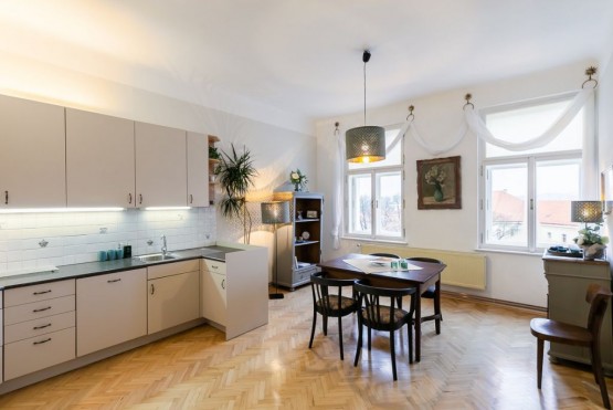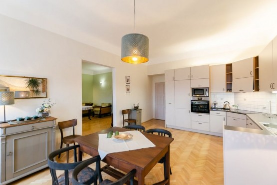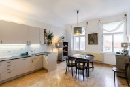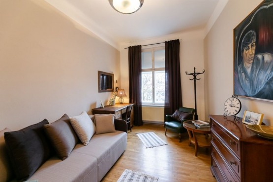 Luxusní byt 4+1 k dlouhodobému i krátkodobému pronájmu o celkové rozloze 125 m2 se nachází ve čtvrtém patře udržovaného činžovního domu včetně výtahu, ve velice žádané loka...litě v centru Prahy v klidné čtvrti ul. Na Bojišti, Praha 2 - Nové Město. Byt je propojením moderního stylu s moc hezkými starožitnými kusy nábytku a dekorací (např. obrazy Alfonse Muchy, historický sekretář, komoda a mnoho dalšího) . Byt sestává ze vstupní předsíně, která poskytuje dostatek úložného prostoru, prostorný obývací pokoj, 3 ložnice (nebo 2 ložnice a pracovnu), kuchyň a 2 koupelny. V jedné z koupelen je vana a pračka, další koupelna má sprchový kout a toaletu. Kuchyňský kout je kompletně vybaven moderními spotřebiči: sklokeramická deska, mikrovlnná trouba, myčka na nádobí, vestavěná lednice s mrazničkou, digestoř. Z bytu je moc hezký výhled na Petřín a do Kateřinské zahrady a na Pražský hrad. Nadstandardní bydlení v centru Prahy s perfektní dopravní dostupností (metro I. P. Pavlova 5 minut chůzí, autobus Na Bojišti u domu, tramvaj I. P. Pavlova). Byt je ihned k nastěhování. Zájemce bere na vědomí, že hradí provizi ve výši jednoho měsíčního nájmu.
