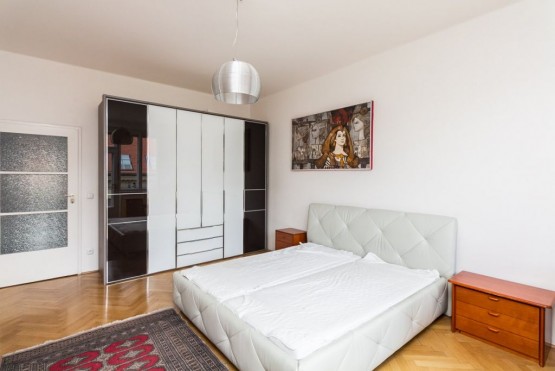 Nabízíme k pronájmu prostorný zařízený byt 4+1 s dvěma balkony o rozloze cca 125 m2. Byt vhodný pro rodinu nebo spolubydlení se nachází v 3. patře cihlového domu včetně výt...ahu v oblíbené lokalitě Královských Vinohrad. Byt sestává z třech samostatných ložnic, které lze dovybavit dle požadavků nájemce. Společenské místnosti s funkčním krbem (možnost využívat jako obývací pokoj nebo pracovnu). Kompletně vybavené kuchyně (lednice, mraznička, myčka, sklokeramická deska, trouba, digestoř). Koupelny s vanou, umyvadlem a bidetem. Další samostatnou toaletou a praktickou šatnou na uložení objemnějších věcí. V bytě se dále nachází dva balkony z nichž jeden je přístupný z kuchyně a jeden z ložnice. Kompletní občanská vybavenost a skvělá dopravní dostupnost. Tramvaje, autobusy i Metro C či A jen 3 minuty chůze od domu.