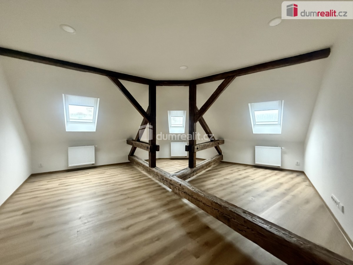 Byt disponuje čtyřmi prostornými místnostmi a velkou kuchyní. Celý prostor je světlý a velice dobře řešený. K bytu patří také nově vybudovaná půda, která se rozprostírá po celé ploše bytu a poskytuje výborný úložný prostor.