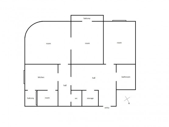Na přání pronajímatel do týdne upraví jako 3 neprůchozí ložnice + pracovna + kuchyň.