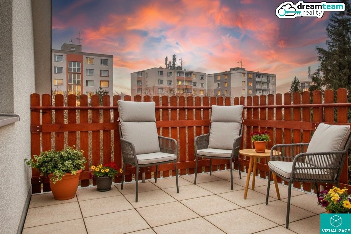 Balkon a zahrada pro odpočinek. Balkon o velikosti tři krát tři metry směřuje na západ do klidu – vejde se tam menší gril i posezení pro čtyři lidi. Ideální na večerní sklenku vína, když západní slunce maluje nebe do oranžova. A když budete chtít víc prostoru, k dispozici máte společnou zahradu přes dvě stě metrů čtverečních – dá se tam grilovat, udělat dětský koutek nebo si pěstovat rajčata, která budou chutnat líp než ta z Kauflandu.