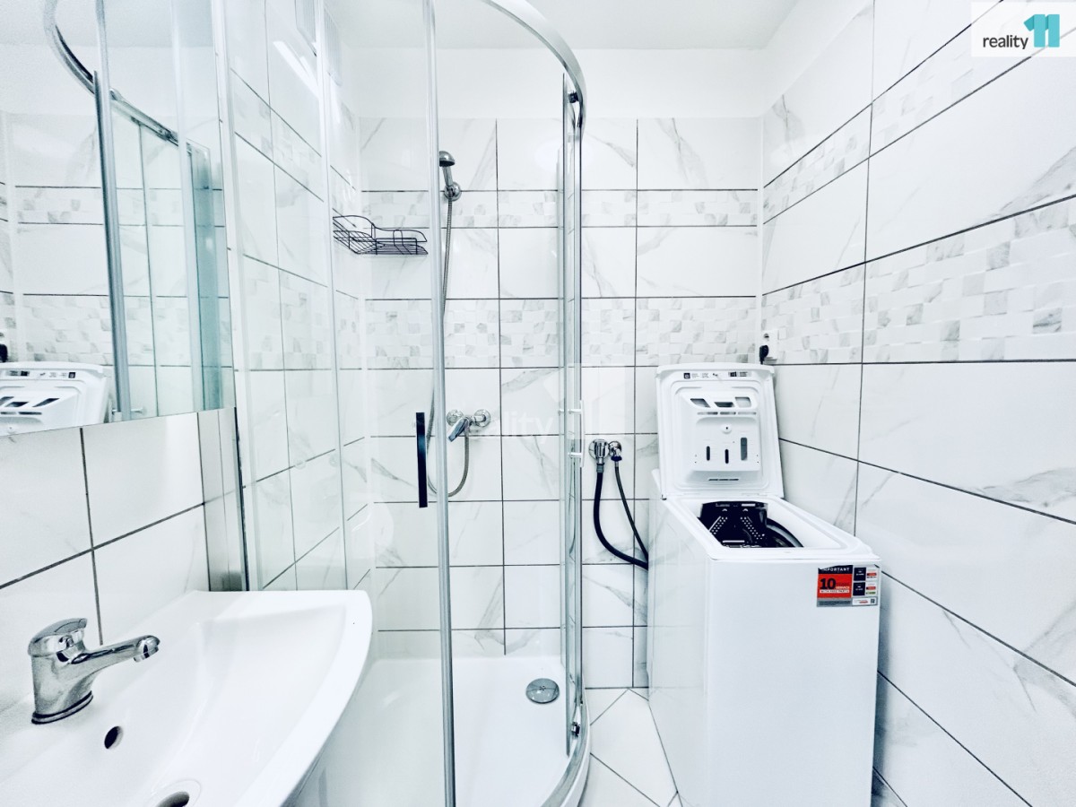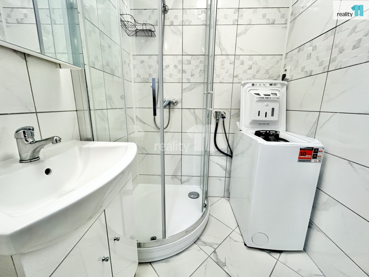 koupelna se sprchovým koutem a pračkou, samostatné sociální zařízení WC.