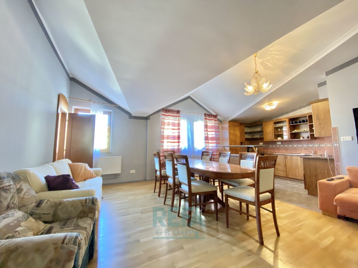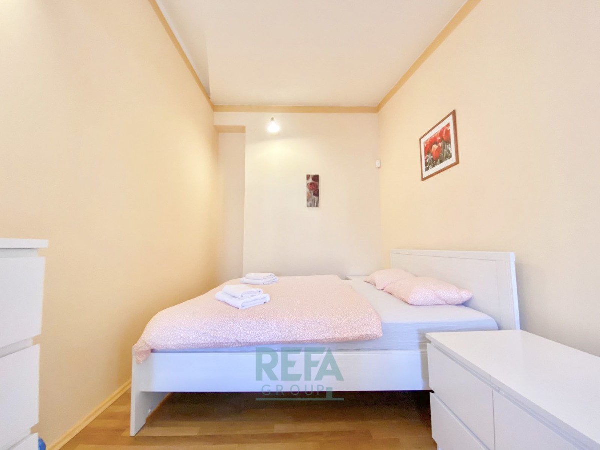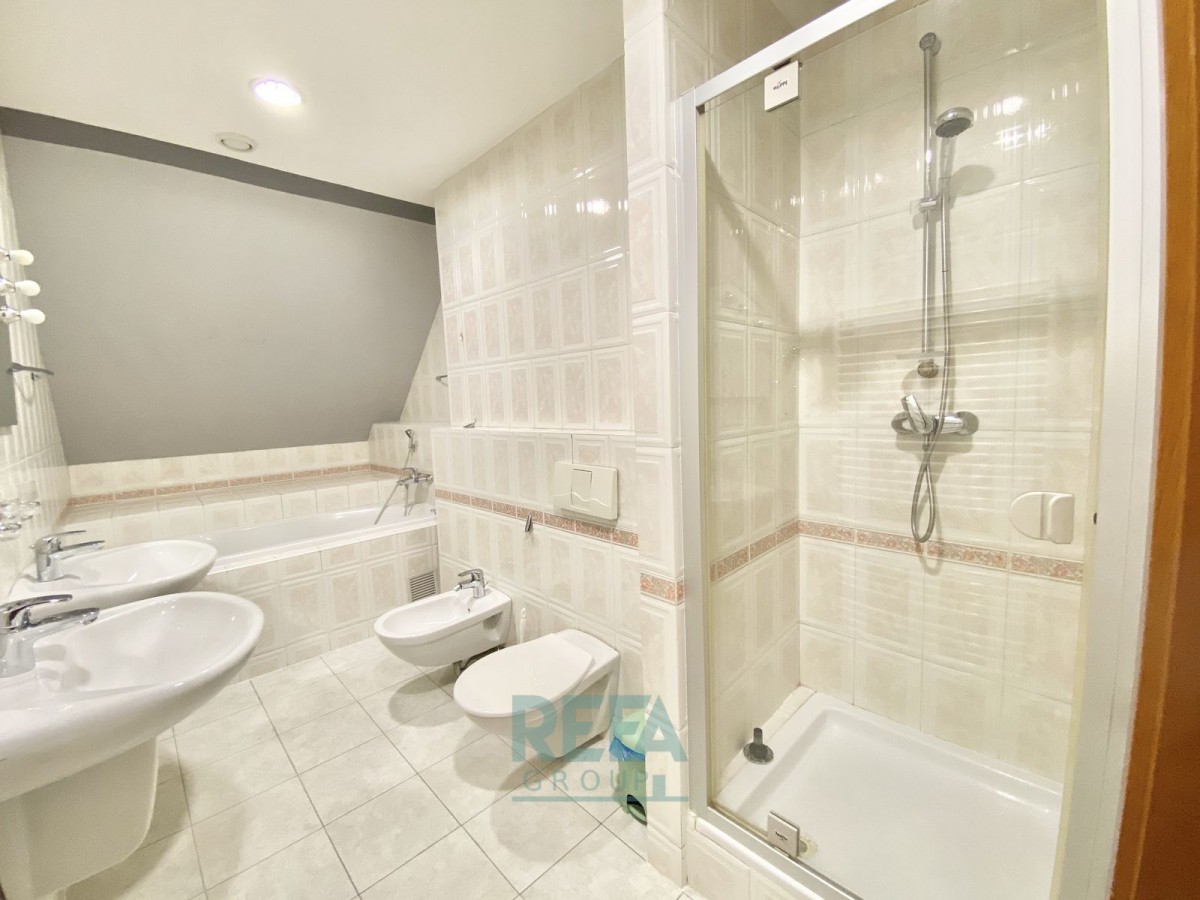 Byt se nachází ve vynikající lokalitě v centru Prahy nedaleko Václavské...ho náměstí ve čtvrtém nadzemním podlaží zrekonstruované budovy včetně výtahu. Po příchodu do bytu se z prostorné chodby bytu dostanete do obývacího pokoje s jídelním koutem a kuchyní. Obývací pokoj je vybaven gaučem, televizí a jídelním koutem pro celou rodinu. Kuchyň je vybavena veškerými spotřebiči, lednicí, sporákem a troubou. Z obývacího pokoje je přístup do ložnice, která je vybavena skříní, zrcadlem a třemi lůžky. Další pokoje jsou vybaveny manželskou postelí, skříní, zrcadlem, gaučem a střešním oknem. K bytu přísluší dvě koupelny. Koupelna je vybavena vířivou vanou, sprchovým koutem, dvěma umyvadly, toaletou a bidetem. V chodbě je umístěna prostorná skříň se zrcadlem. Další místností je komora, kde je umístěna pračka.