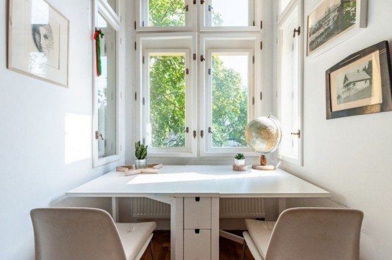Byt je po částečné rekonstrukci (koupelny a toalety, rozvody vody, elektřiny, plynu i topení). V interiéru jsou zachované původní prvky, například dřevěné stromečkové parketová podlaha a zrestaurovaná špaletová okna, dvoukřídlé dveře nebo mosazné kliky, okenní kličky a garnýže. K dobové atmosféře přispívají stylová svítidla. Součástí je plynový kotel na vytápění a ohřev vody.