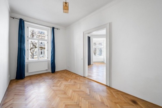 REZERVOV (osobní vlastnictví)ÁNO! Pronájem světlého prostorného nezařízeného rohového bytu 4+kk, 110 m2 s prvorepublikovou atmosférou ve 2. podlaží pětipodlažního hi...storického domu včetně výtahu v klidné ulici Křižíkova vedle moc hezkého Lyčkova náměstí v nové a rychle se rozvíjející čtvrti Karlín, Praha 8.