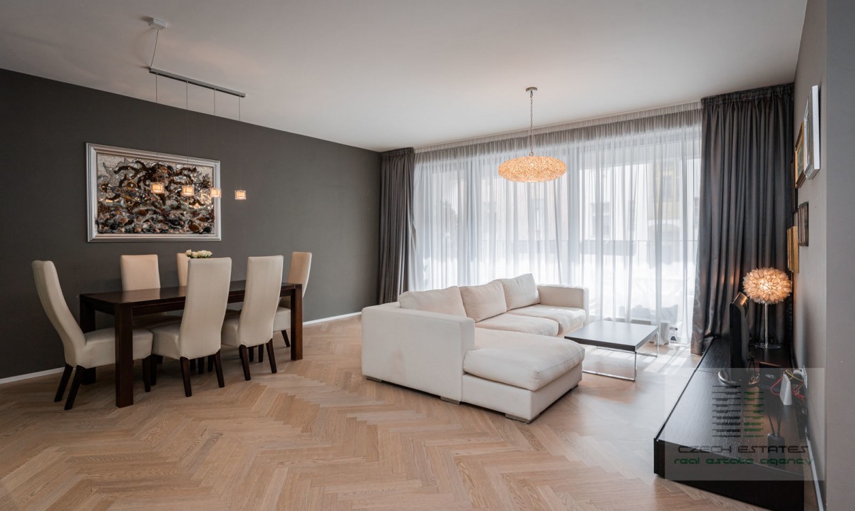 Nabízíme k pronájmu klidný a světlý byt na pražském Žižkově. Celý dům i byt má velice vysokou energetickou třídu, s min. potřebou topit. Byt má vlastní větraní. Podlahy v celém bytě jsou dřevěné (kromě koupelen, kde je ...keramika). Koupelny mají jedny z nejkvalitnějších sanitarii (Villeroy & Boch a Laufen). Skřínky pod umyvadly jsou dělány na míru. Byt má spoustu úložného prostoru, všechny skříně jsou dělány na míru. Manželská ložnice má vlastni šatnu. K pronájmu patří i LG pracka a samostatná sušička. Závěsy a záclony nejvyšší kvality byly dělány na míru v designerském studiu Marthi. Manželská ložnice má hedvábné závěsy a Roberto Cavalli tapetu. Nábytek v manželské ložnici je plné dřevo z obchodu Le Patio. Sedací souprava, nízká komoda a konferenční stůl v obýv. pokoji jsou od dánské značky Bo Concept. Kuchyň byla dělaná designery z Italie na míru. Všechny spotřebiče jsou Miele v nejlepší energetické třidě. Varna deska je indukční. Všechno stropní osvětleni je nejvyšší kvality. Lustr v obýv. pokoji a v manželské ložnici je z pravých mušlí a dovezeny přímo z Filipín. Záloha na služby 4000/měs. Elektřina převod na nájemníka. Součástí nájemného je garážové stání, pult elektronické ochrany, 1 krát měsíčně úklid bytu.