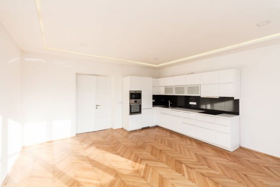 Krásný zcela nový byt 4+kk k pronájmu po kompletní rekonstrukci o celkové rozloze 118 m2 se nachází v prvním patře zrekonstruovaného rodinné vily z 30. let (bez výtahu...) v ulici Plzeňská, Praha 5.
