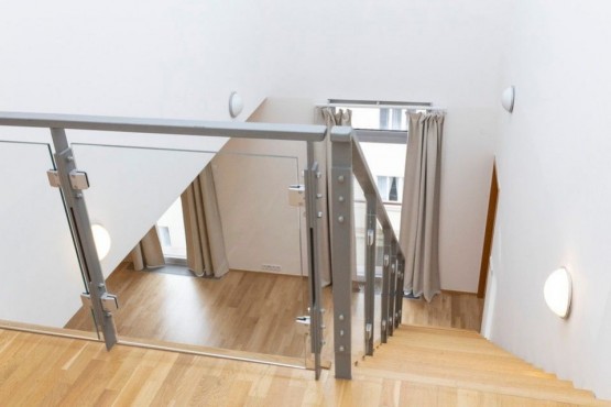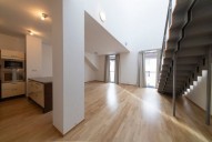 Prostornému mezonetu 4kk o celkové rozloze 131, 3 m2 dominuje v přízemí otevřený prostor obývacího pokoje s kuchyňským koutem a jídelnou, vstupní hala, koupelna s toaletou, nadzemní podlaží zahrnuje dva pokoje - ložnice se suite koupelnou (koupelna s vanou), šatna.