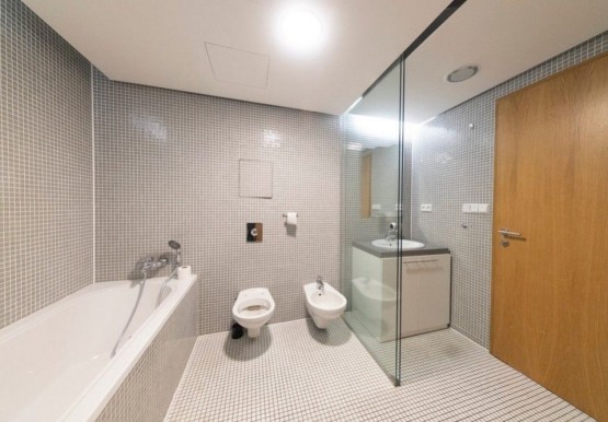 Vybavení zahrnuje dřevěné podlahy, úložné prostory, osvětlení v celém bytě, kuchyňská linka, pračka, myčka, sušička, bezpečnostní dveře, interkom či vstup na čipovou kartu. Vytápění podlahovými konvektory se zdrojem tepla z centrální kotelny v domě.