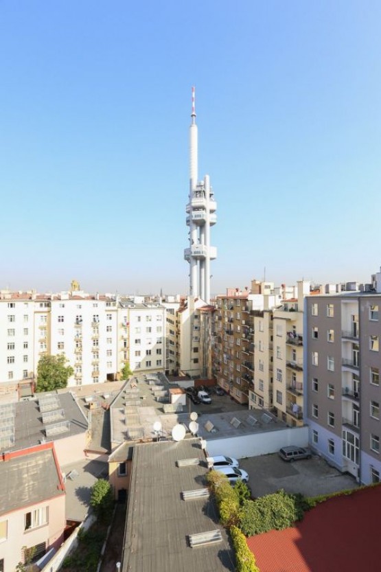 Krásný velmi prostorný mezonetový byt 4+kk se nachází v 5. patře cihlového domu v Praze 3 na Vinohradech, přímo na náměstí Jiřího z Poděbrad. Byt je nezařízený a jeho rozloha ...je 150 m2. V nedávné době byl kompletně zrekonstruován. K bytu patří krásná terasa do klidného vnitrobloku s výhledem na Žižkovskou věž. Kuchyně je vybavena lednicí s mrazničkou, plynovým sporákem, troubou a myčkou. V bytě jsou dvě koupelny vybavené vanou, sprchovým koutem a toaletou. Další toaleta je v samostatné místnosti. K dispozici je telefonní linka, ADSL připojení k internetové připojeníu, satelitní a kabelová televize. V bytě se dále nachází vestavěné skříně, menší šatna a pračka. Je zde zajištěné parkování v uzamykatelné garáži v domě v ceně 5000 Kč/měsíc, které je již zahrnuto v ceně pronájmu. Velice žádaná lokalita nabízí kompletní občanskou vybavenost, supermarket, výborné restaurace, mateřská školka, základní škola a nedaleké nákupní centrum s multikinem. Na náměstí se také dvakrát týdně konají farmářské trhy. Perfektní dopravní obslužnost (stanice tramvaje a metra 100 metrů od domu). Nedaleko domu se nachází rozlehlé Riegrovy sady, ideální místo pro sport či relaxaci.